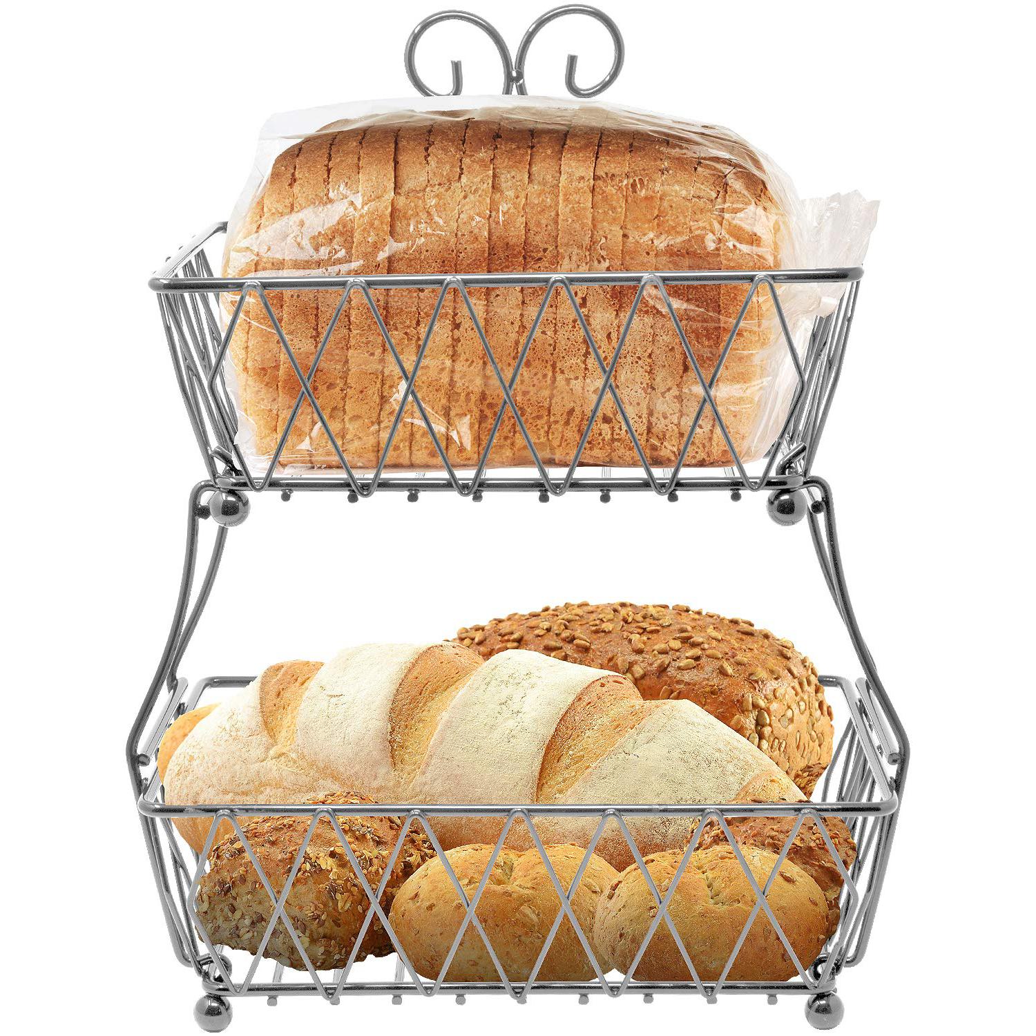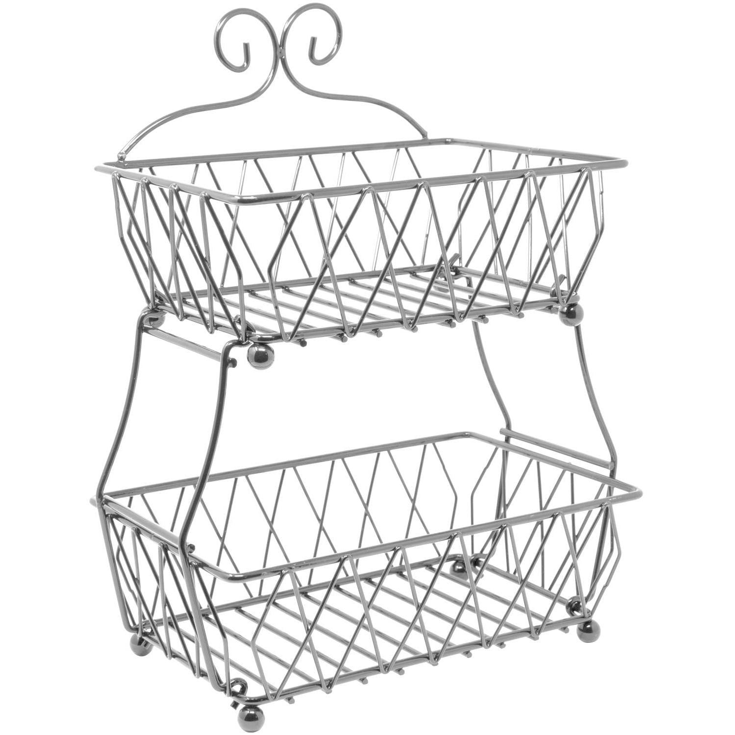 Put your food on display in this charming 2-Tier Wire Basket. It features two rectangular (open concept) baskets with classic antique style. Store anything from fresh fruit, bread, and snacks to general household items. The versatile design allows you to maximize vertical space on your countertops or dissemble into two separate serving pieces. Use it for everyday use in the kitchen or entertaining special occasions on the buffet.