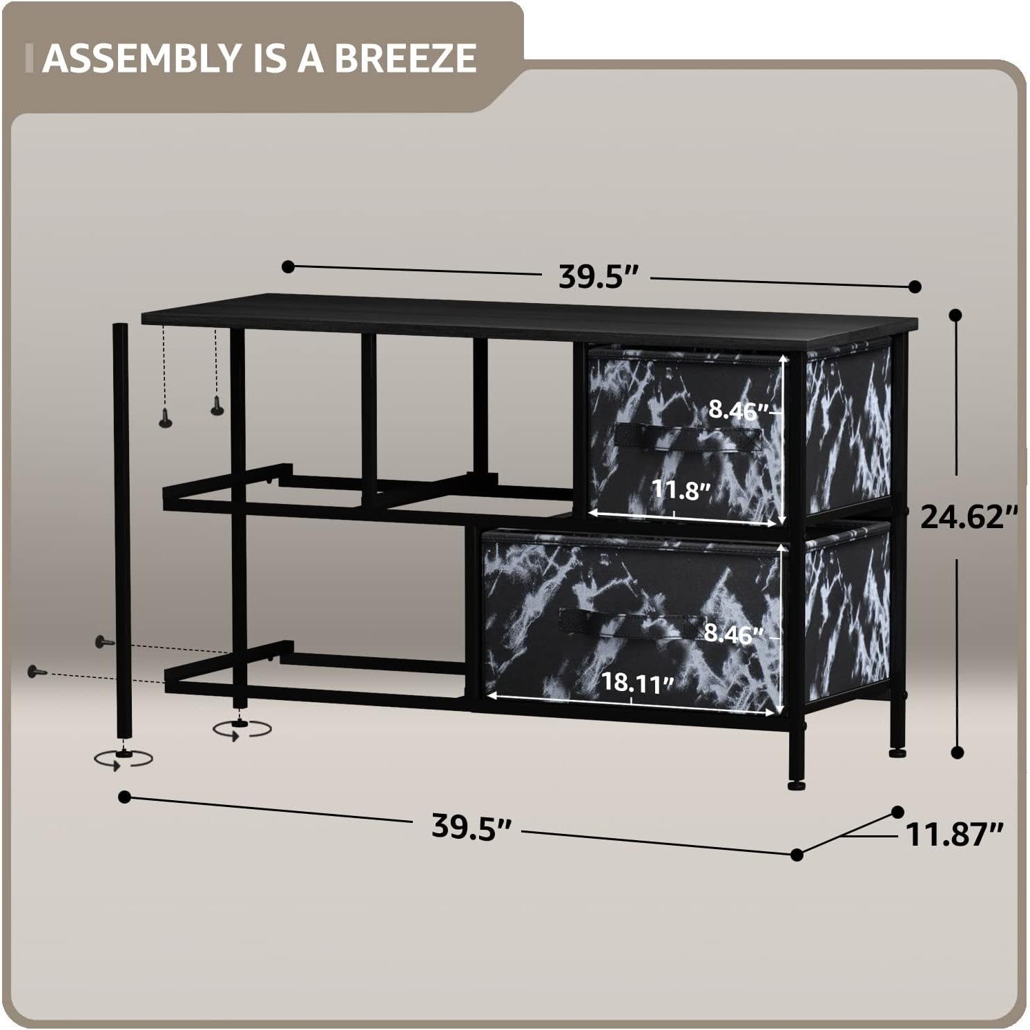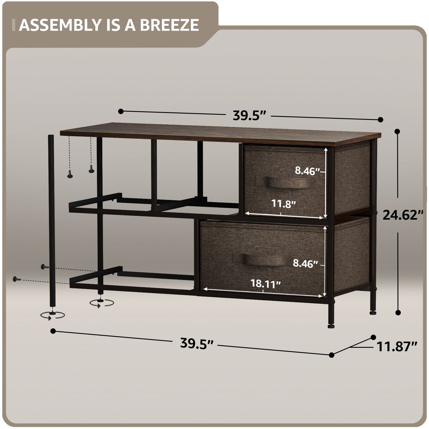 - Measures approximately 39.50" L x 11.87" W x 24.62" H
