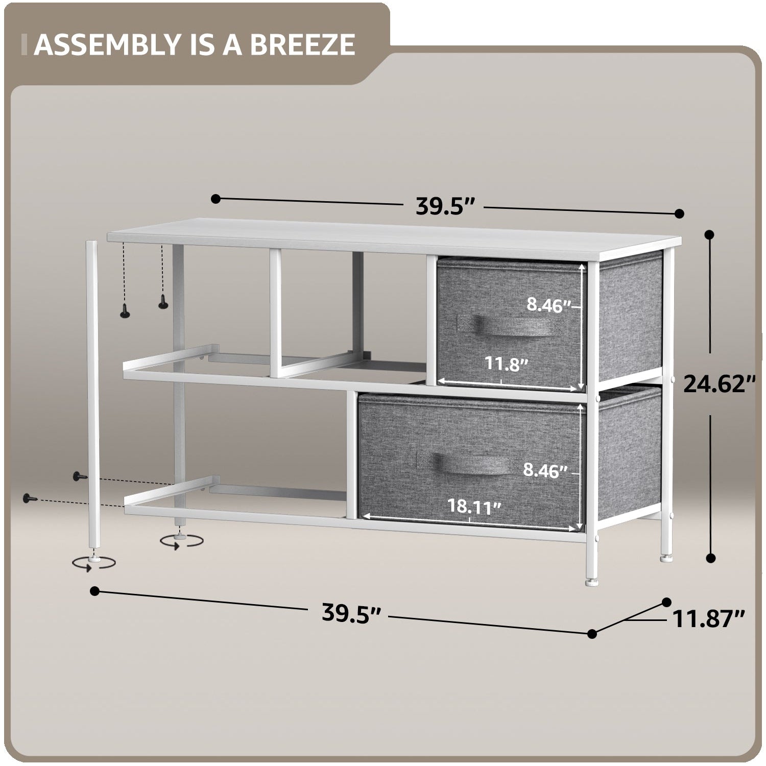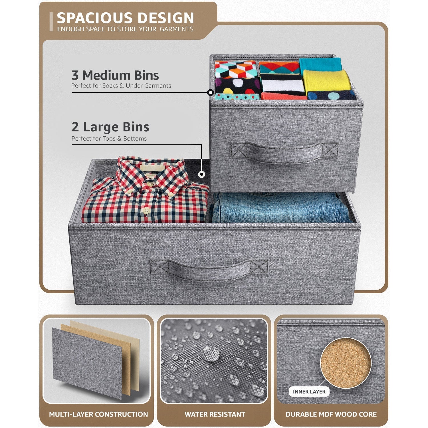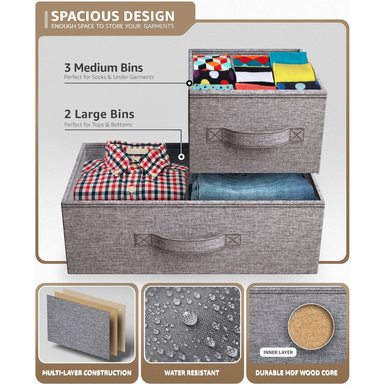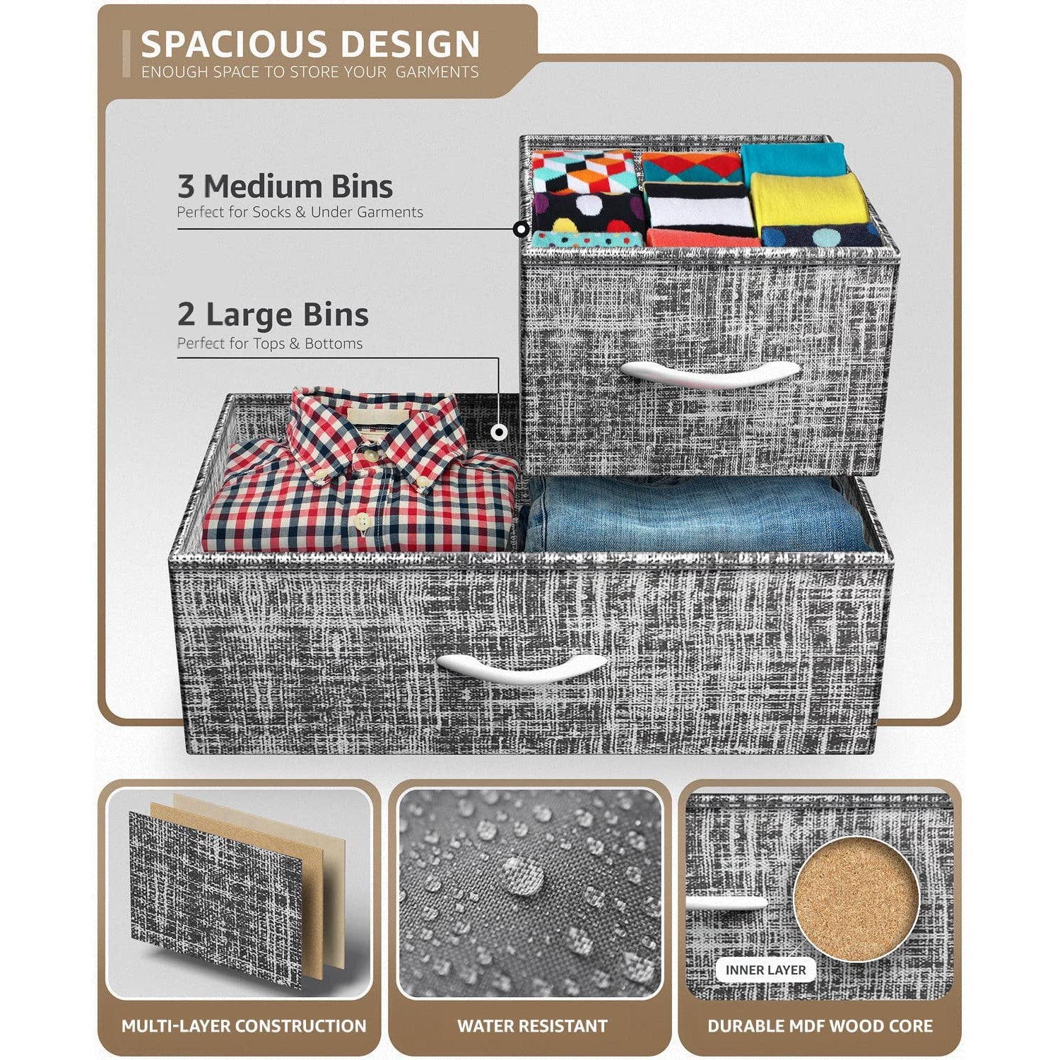 - Drawers made of non-woven (polyester) fabric