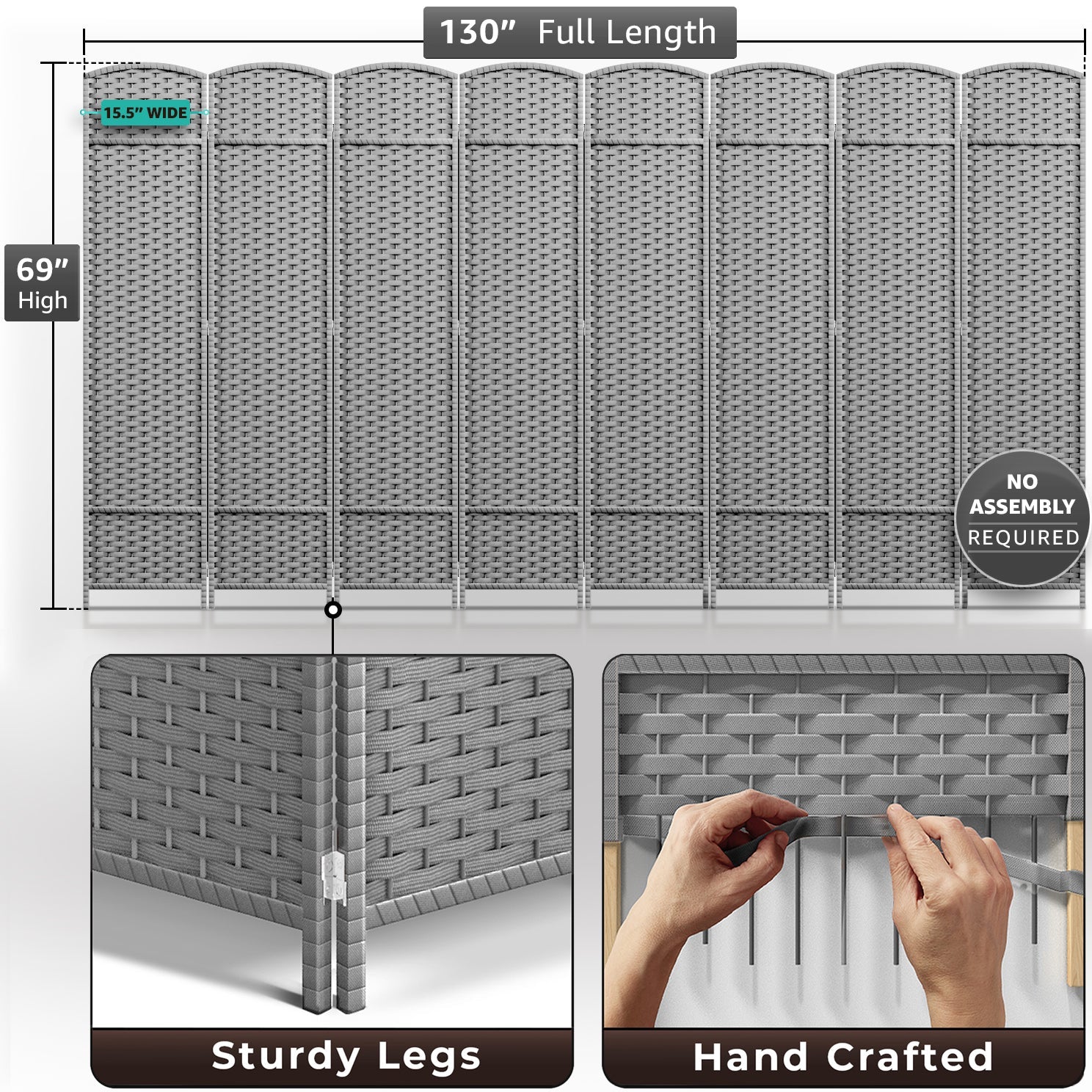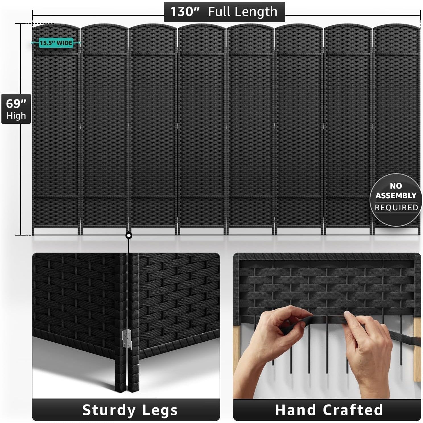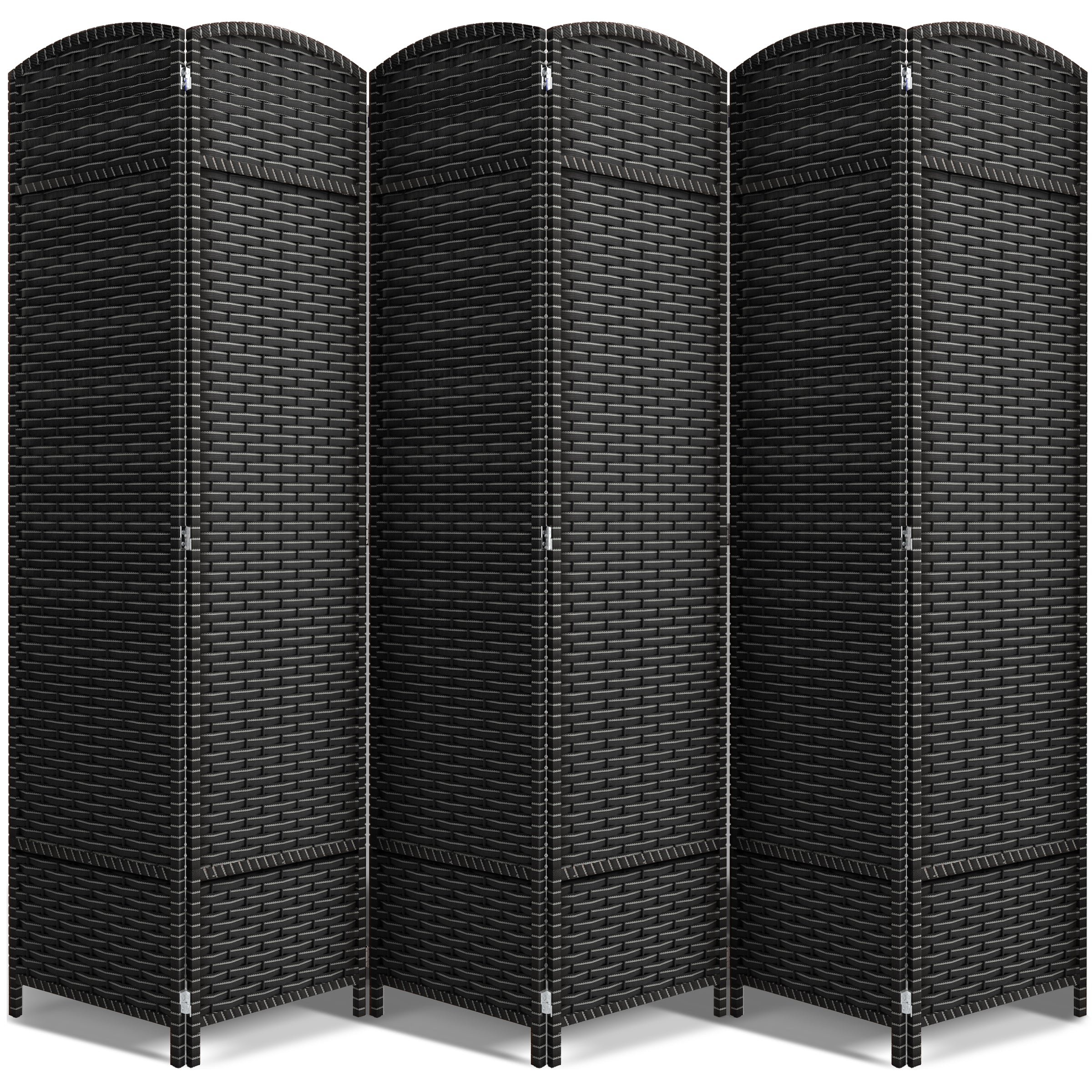 6 Panel - Equipped with 6 double hinged panels and measuring 6 ft. tall, this room divider is extra wide for maximum coverage. Each panel measures 15.5 inches - When fully extended, the partition room divider measures 96 in x 69 in H