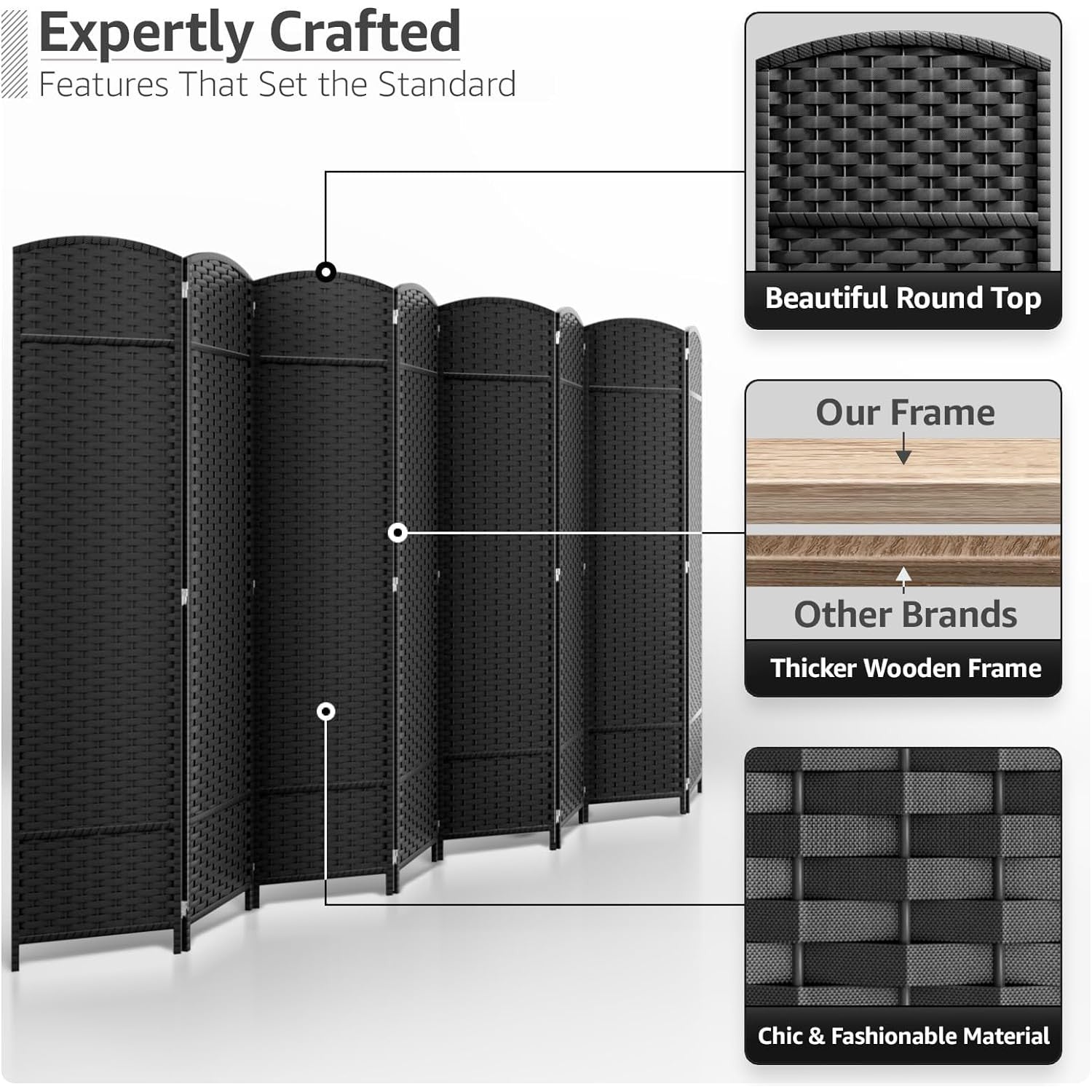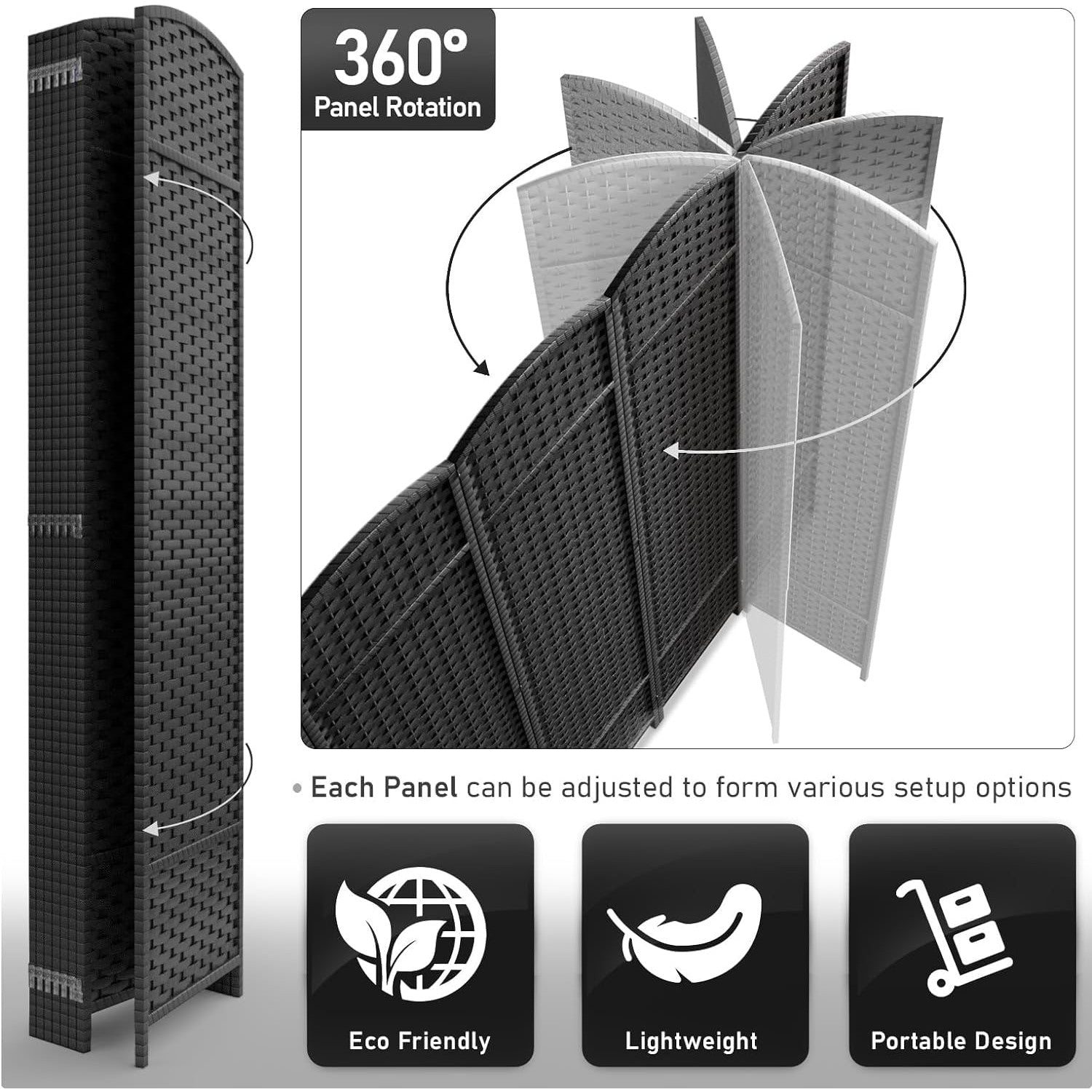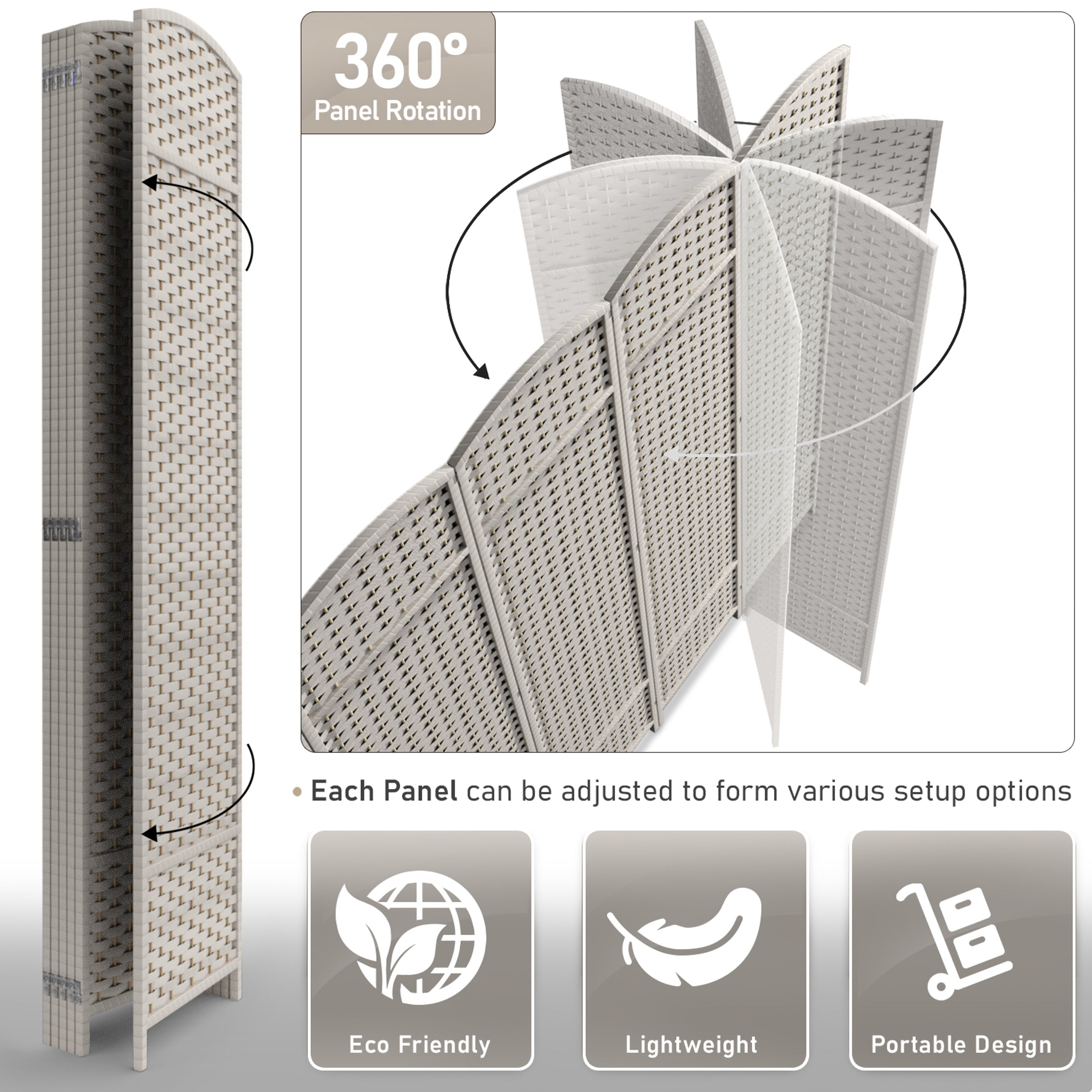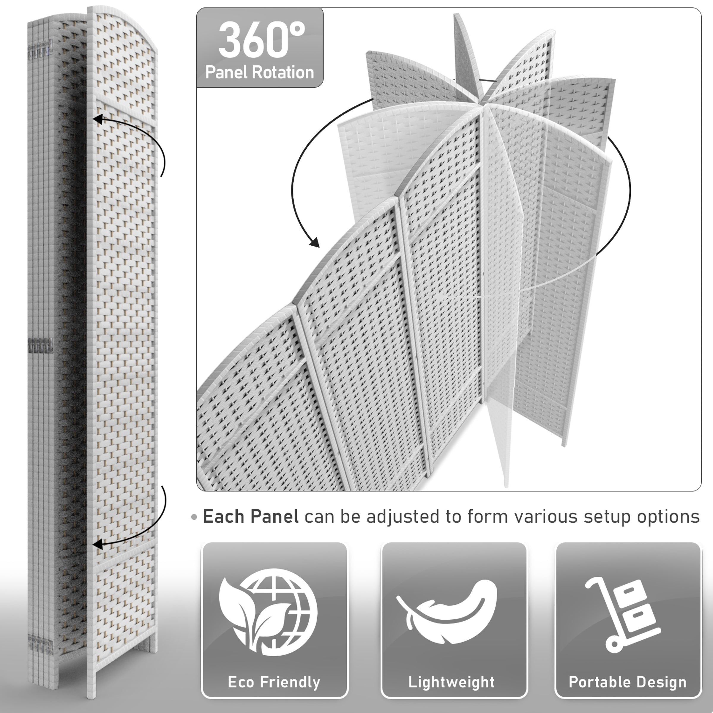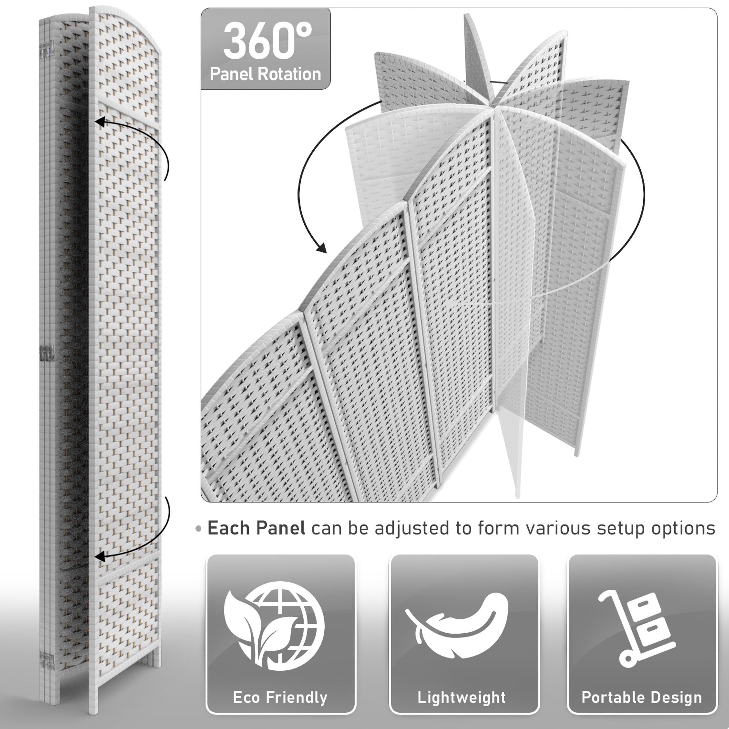 • Room divider with stylish woven inspired pattern - Comes as 4, 6 and 8 Panels.