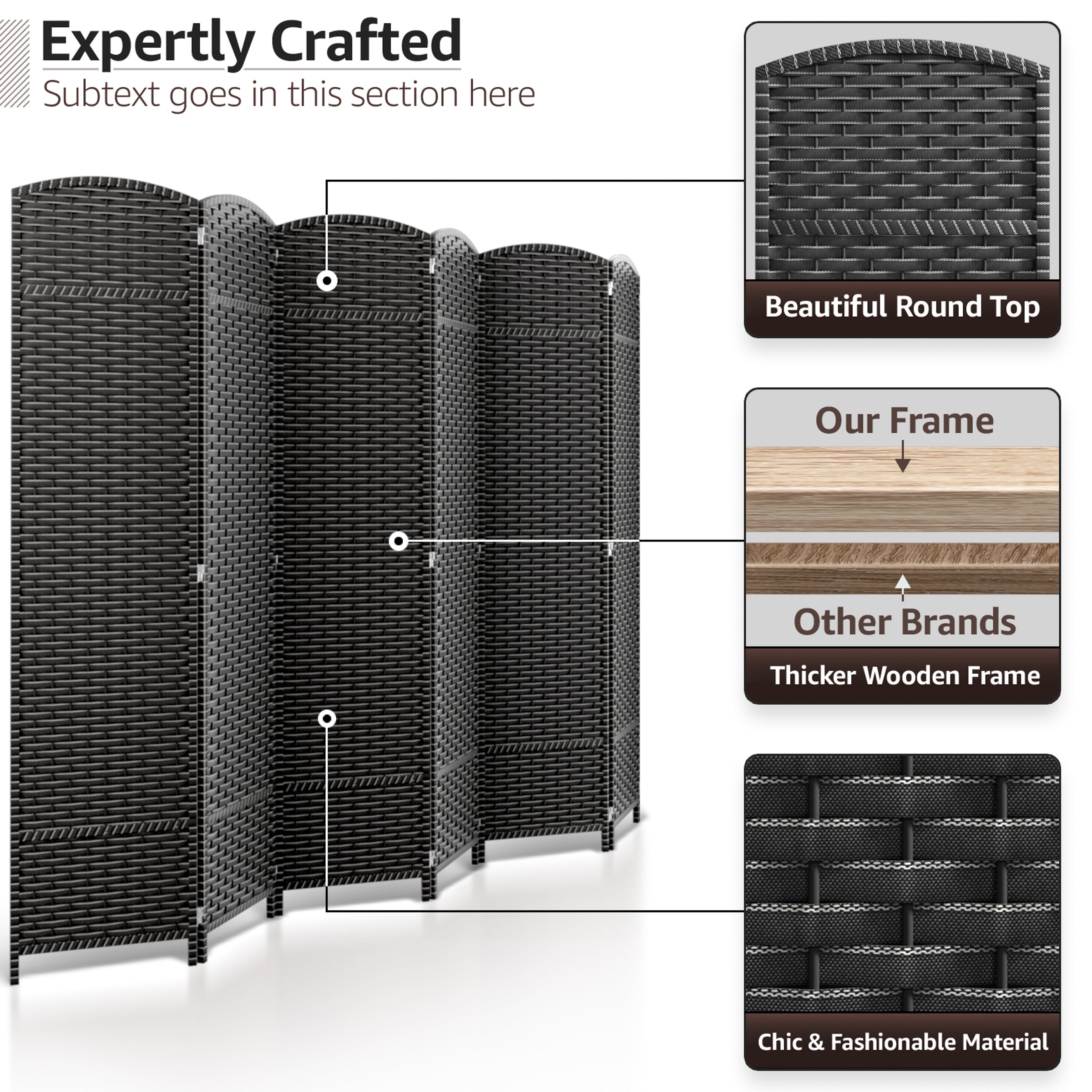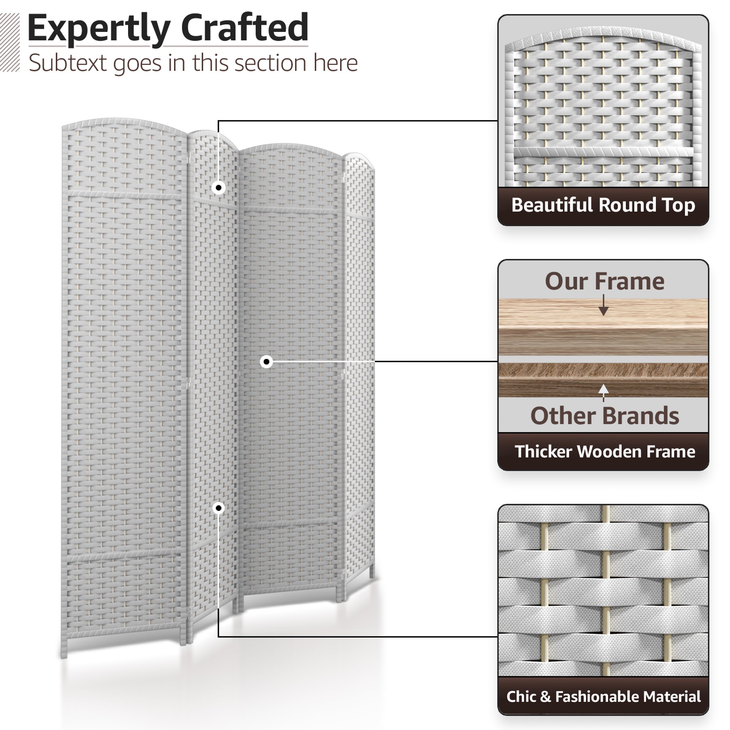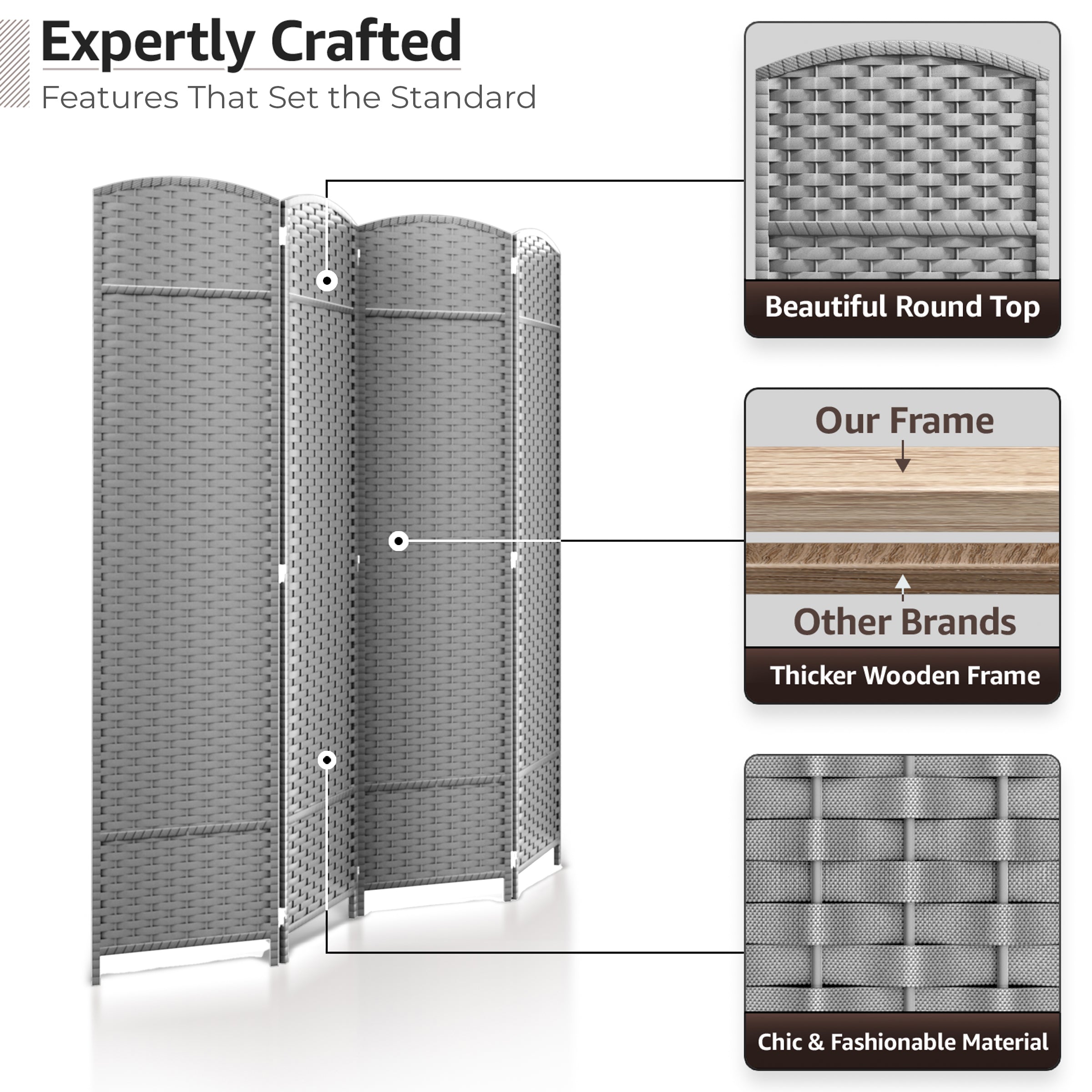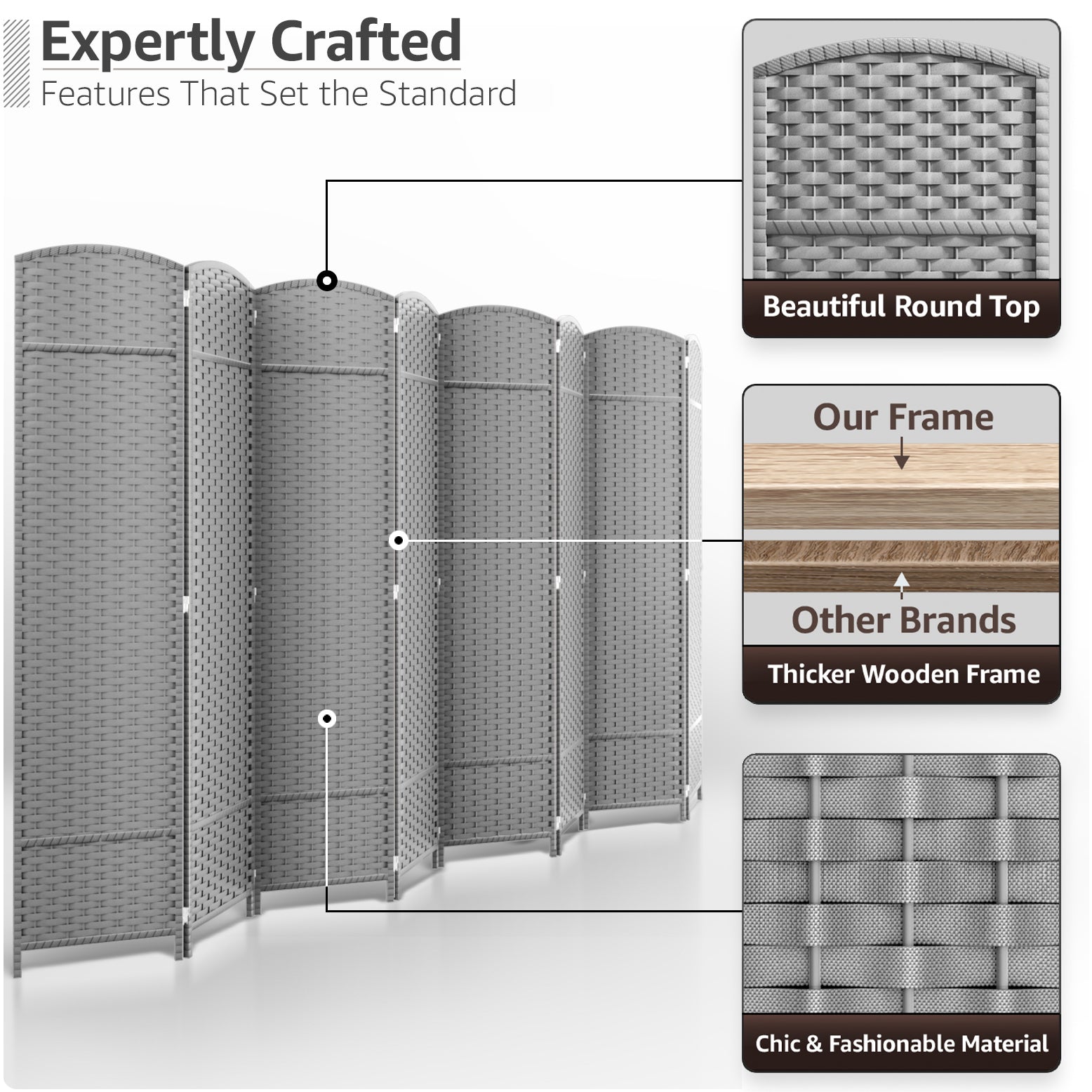 • Room divider with stylish woven inspired pattern - Comes as 4, 6 and 8 Panels.