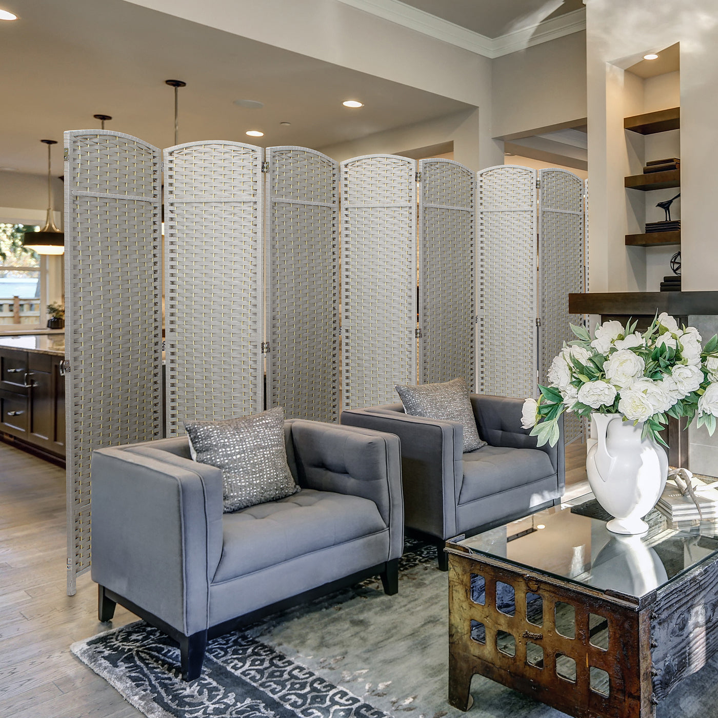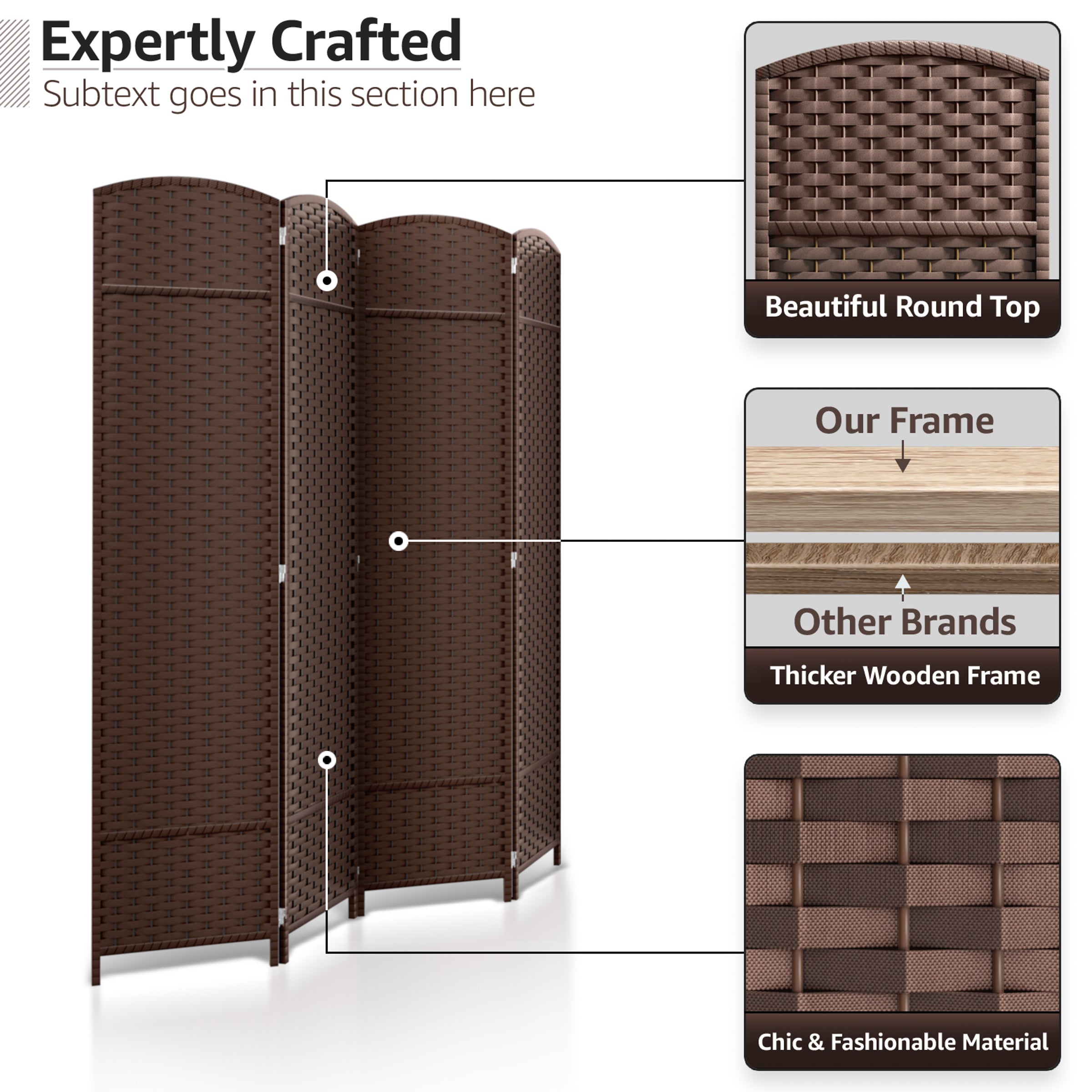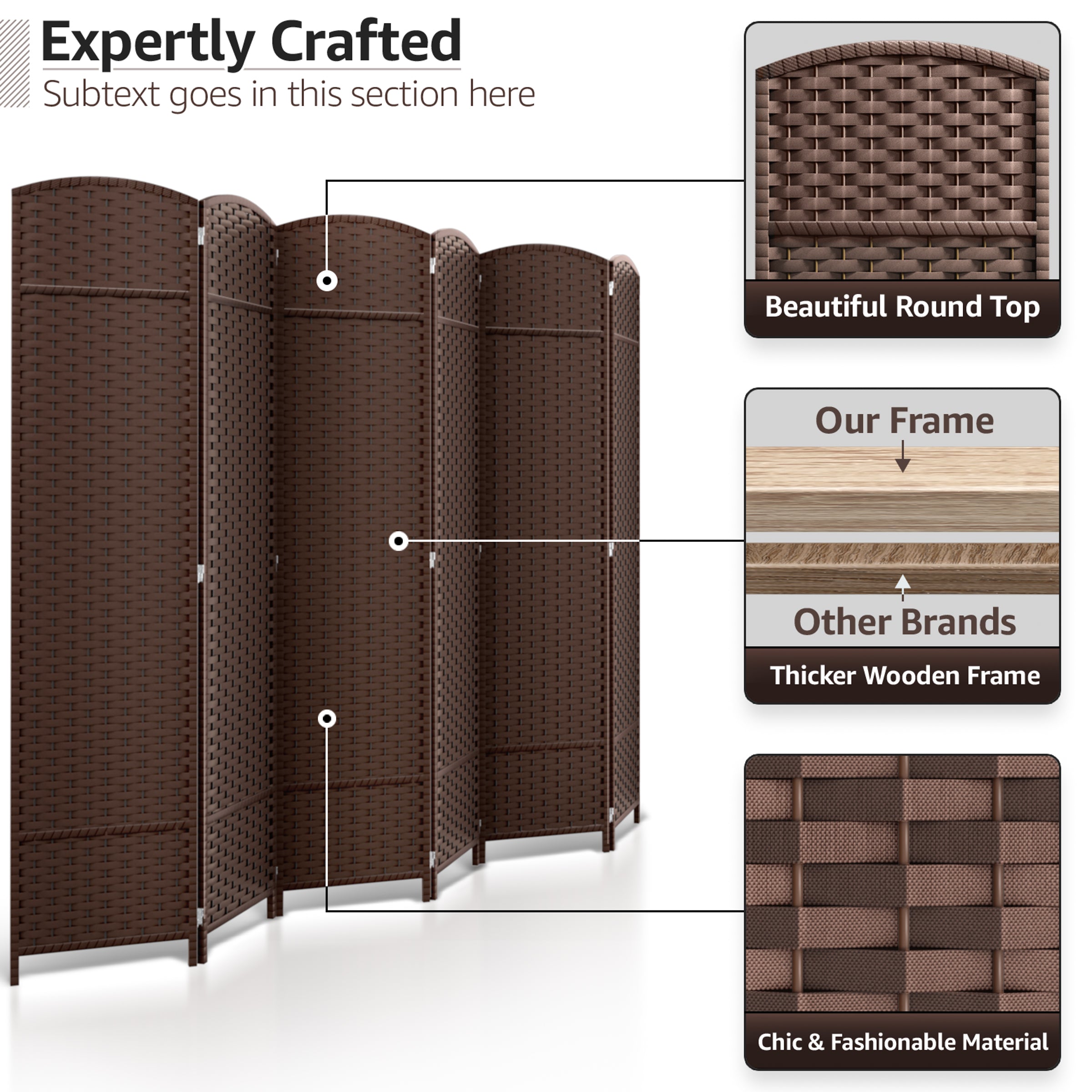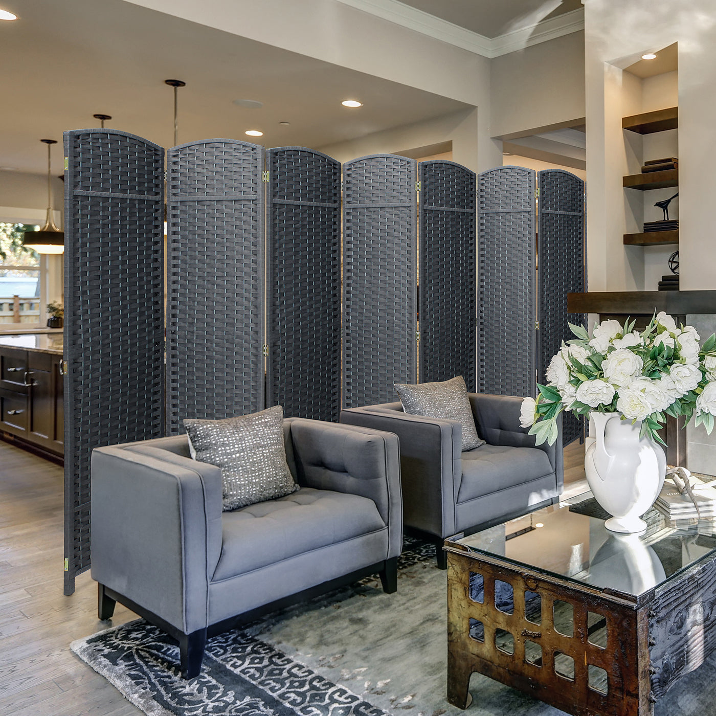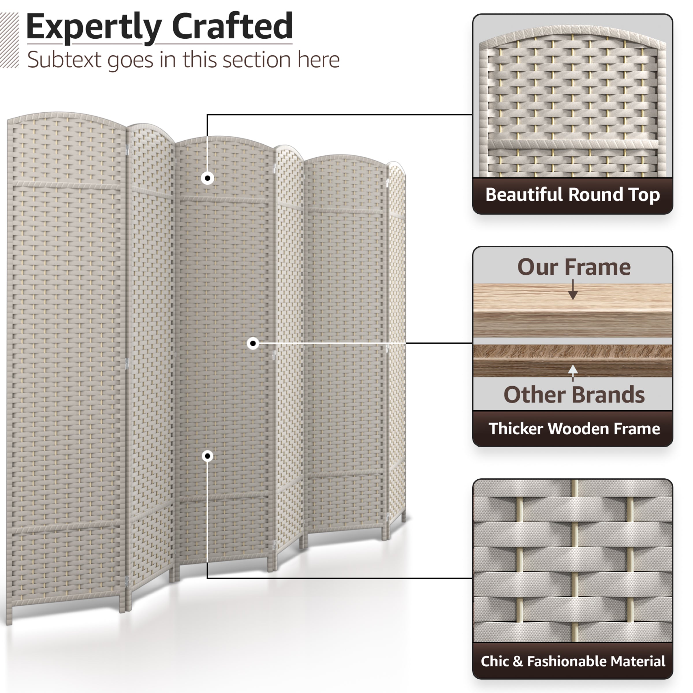 • Room divider with stylish woven inspired pattern - Comes as 4, 6 and 8 Panels.