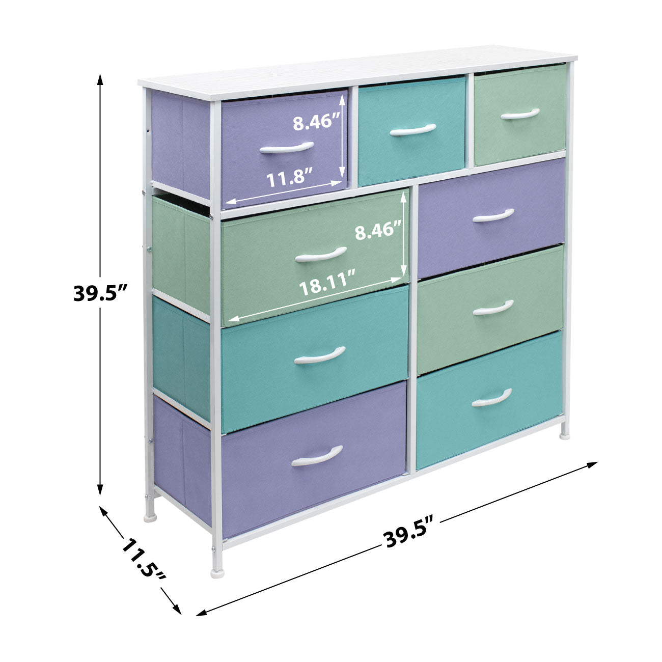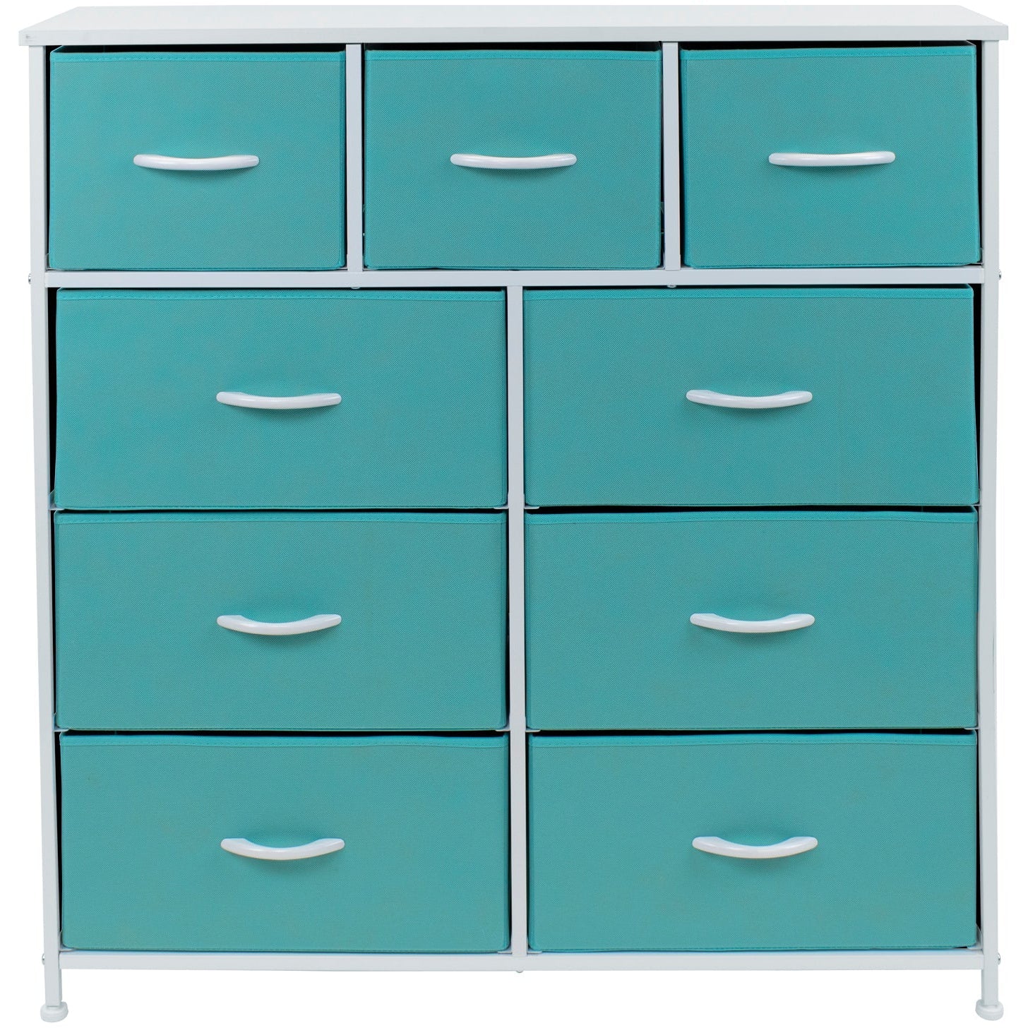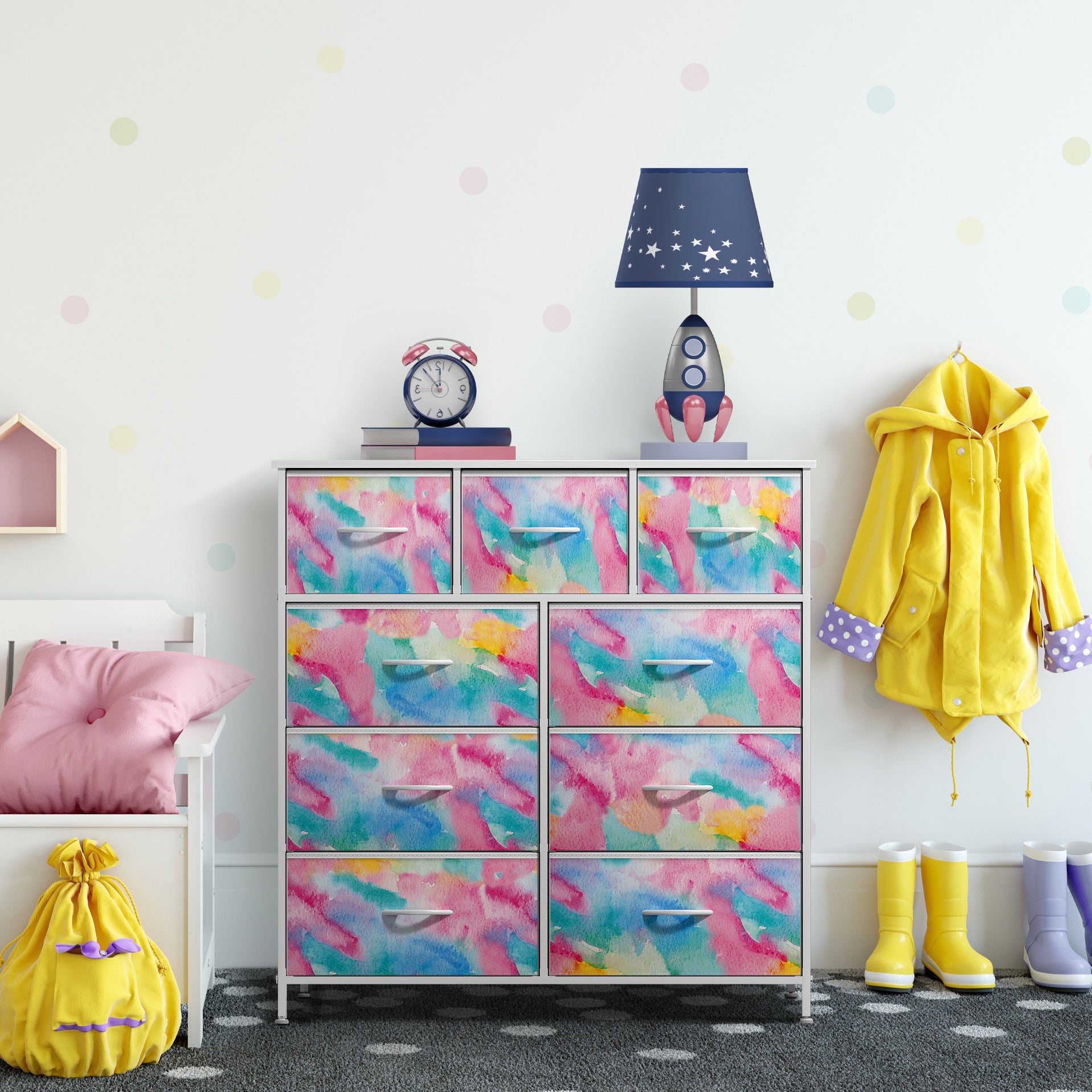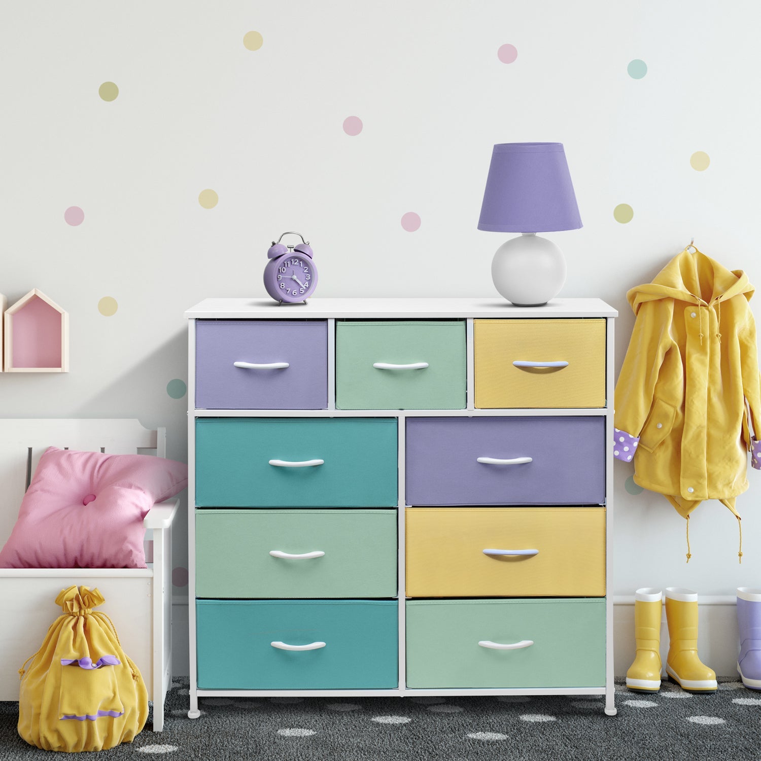 Update your child's room with our 9-Drawer Dresser. This colorful chest features a tabletop surface and pull-out drawers to tuck away household clutter. Place all of your child's folded t-shirts, jeans, and pajamas, or extra blankets and toys within the spacious fabric drawers. For display, the top surface can be used for lamps, books, clocks, and more. The playful color makes this dresser charming for any nursery, playroom, or bedroom. It is lightweight for easy transport and when not in use, simply fold the fabric drawers flat. Complete the look with similar styles from the Sorbus Storage Collection.