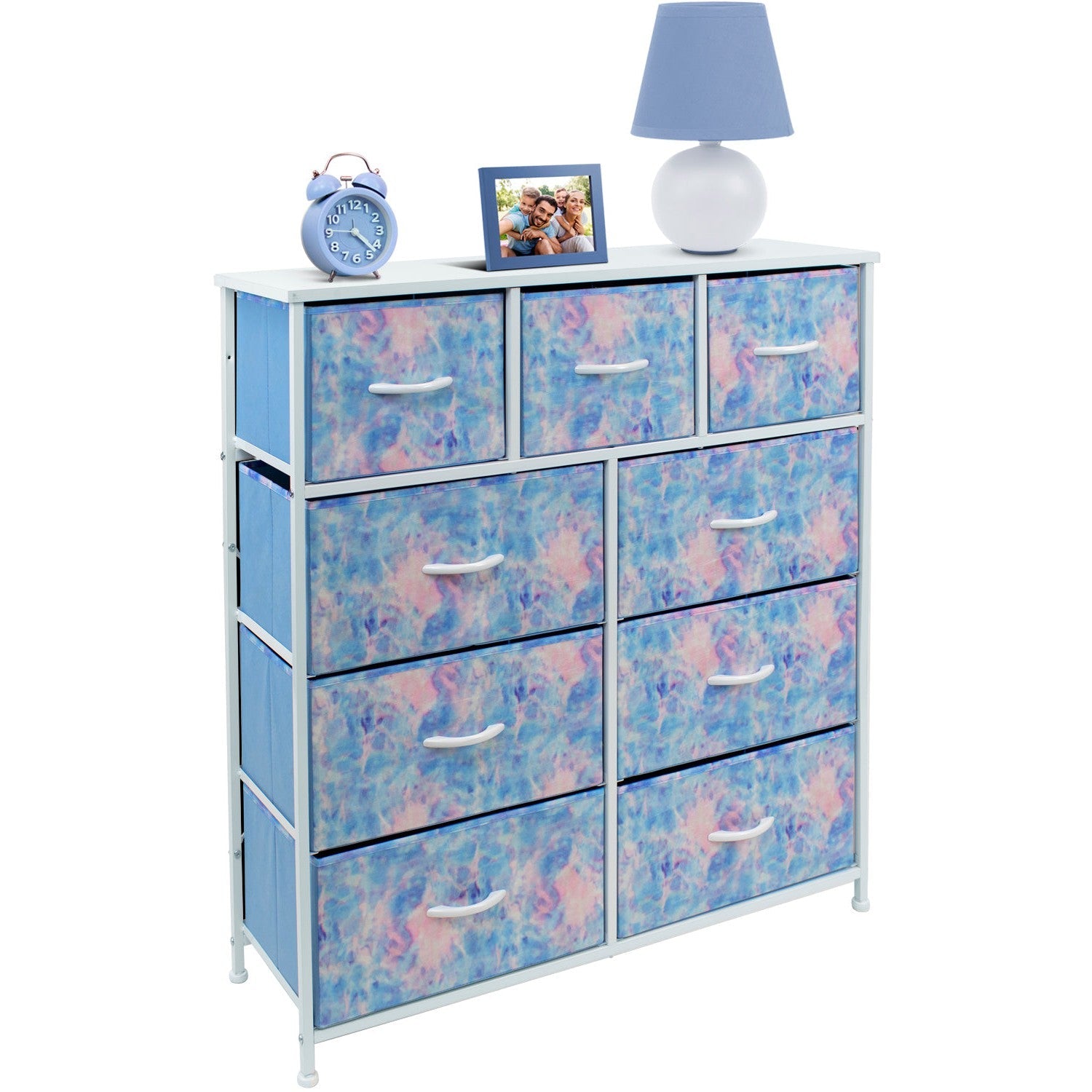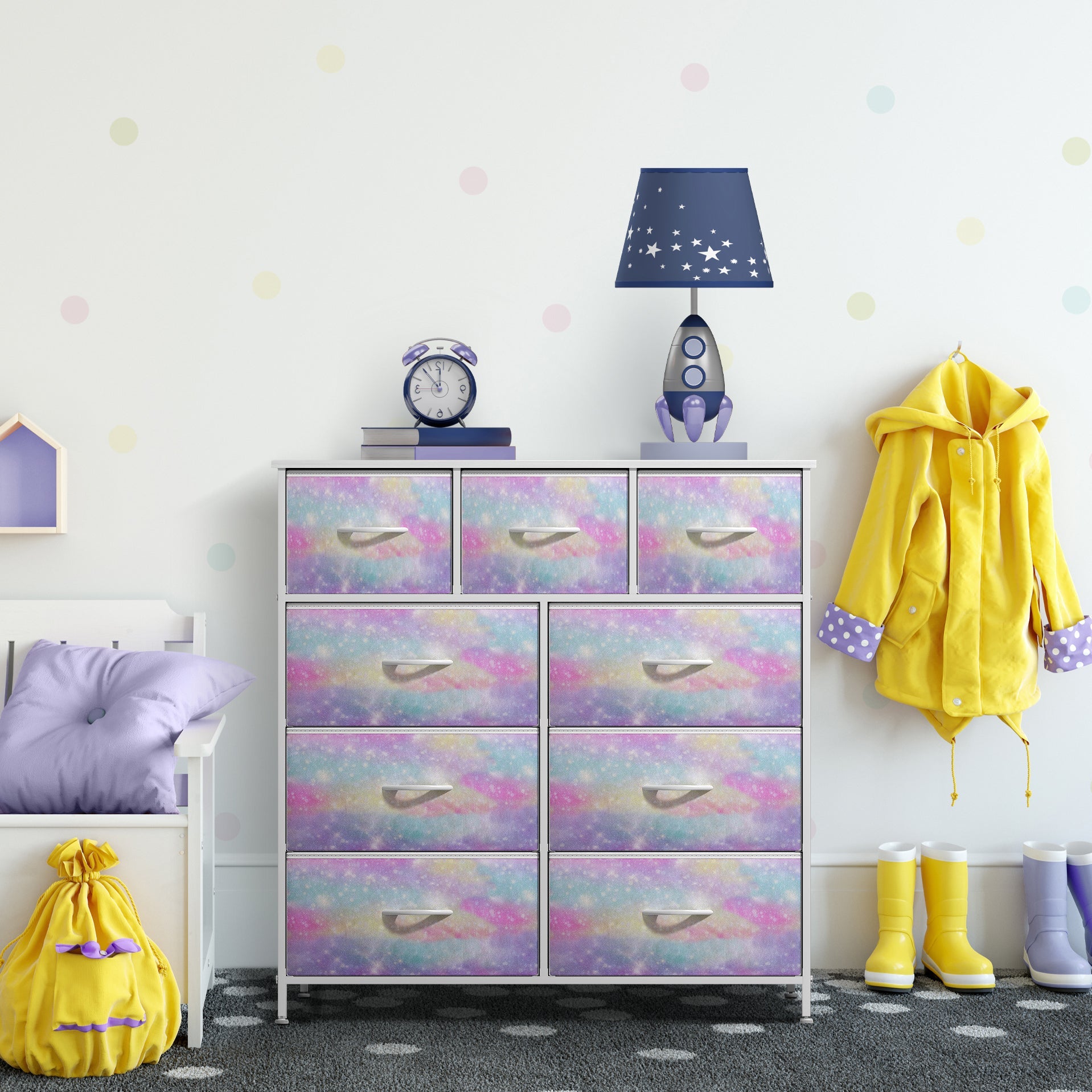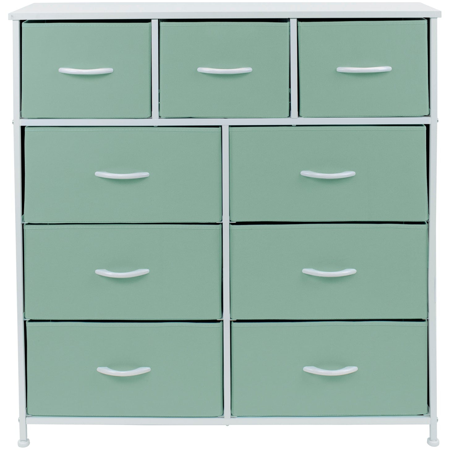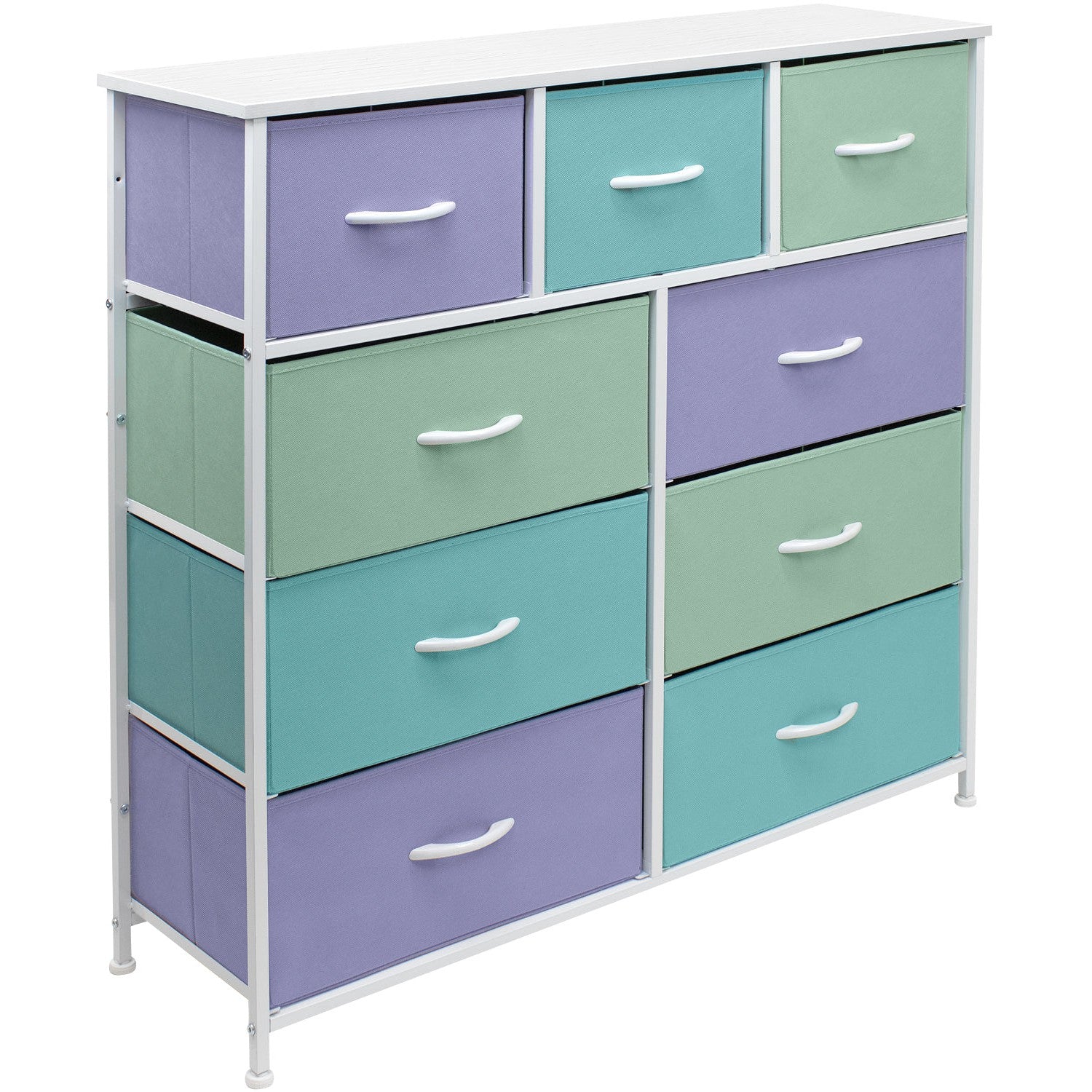 Update your child's room with our 9-Drawer Dresser. This colorful chest features a tabletop surface and pull-out drawers to tuck away household clutter. Place all of your child's folded t-shirts, jeans, and pajamas, or extra blankets and toys within the spacious fabric drawers. For display, the top surface can be used for lamps, books, clocks, and more. The playful color makes this dresser charming for any nursery, playroom, or bedroom. It is lightweight for easy transport and when not in use, simply fold the fabric drawers flat. Complete the look with similar styles from the Sorbus Storage Collection.