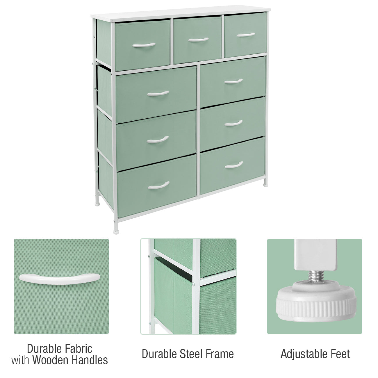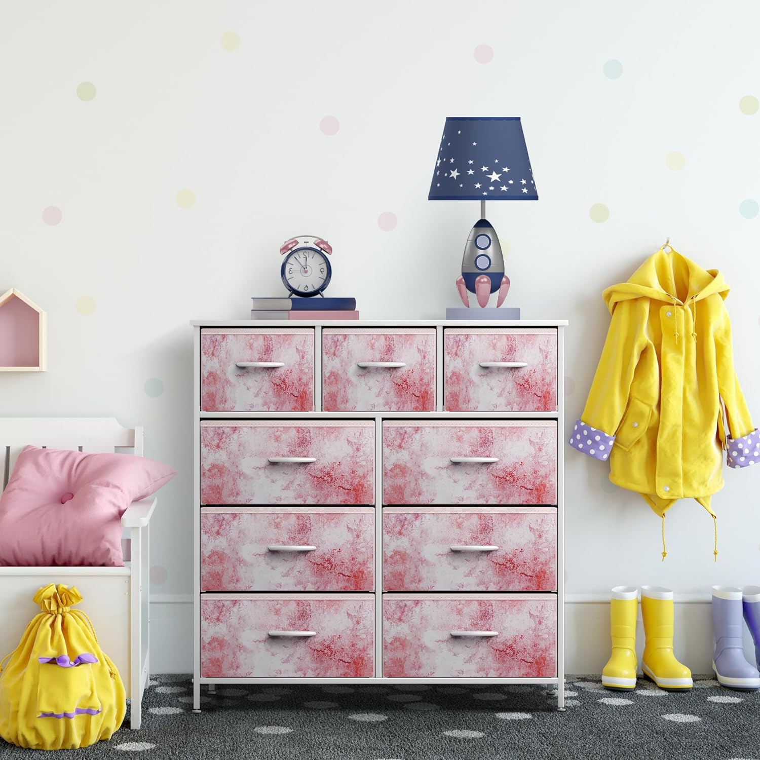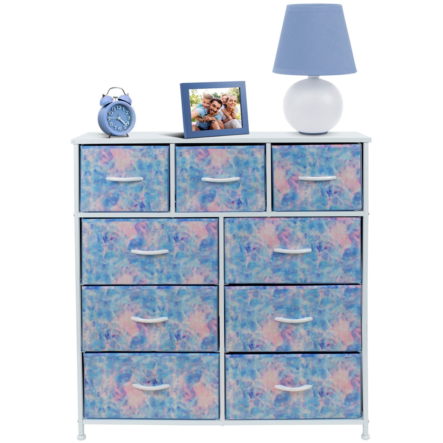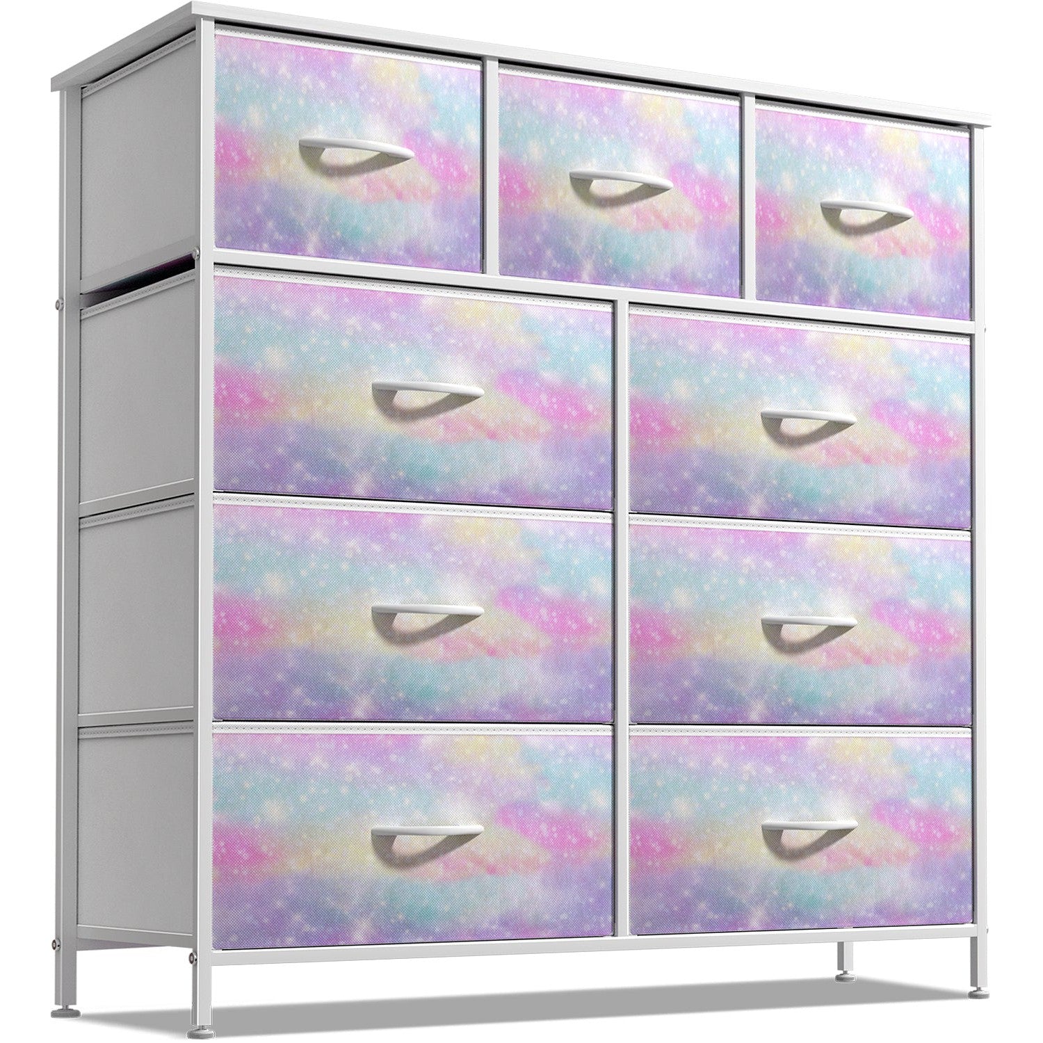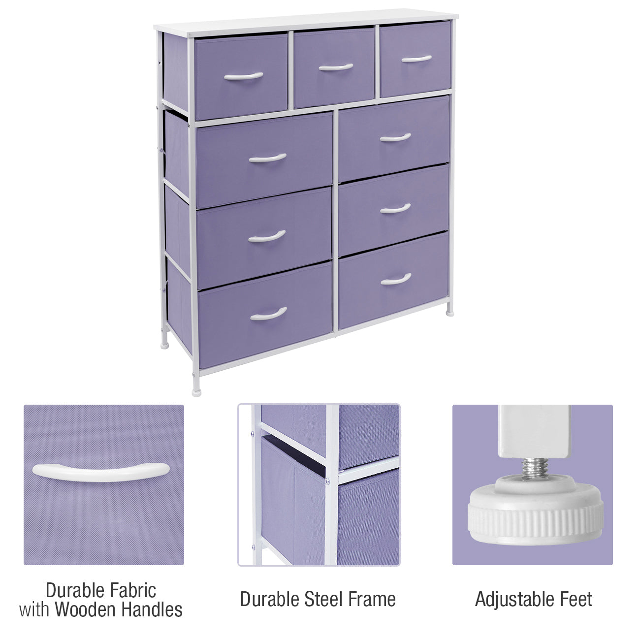 Update your child's room with our 9-Drawer Dresser. This colorful chest features a tabletop surface and pull-out drawers to tuck away household clutter. Place all of your child's folded t-shirts, jeans, and pajamas, or extra blankets and toys within the spacious fabric drawers. For display, the top surface can be used for lamps, books, clocks, and more. The playful color makes this dresser charming for any nursery, playroom, or bedroom. It is lightweight for easy transport and when not in use, simply fold the fabric drawers flat. Complete the look with similar styles from the Sorbus Storage Collection.