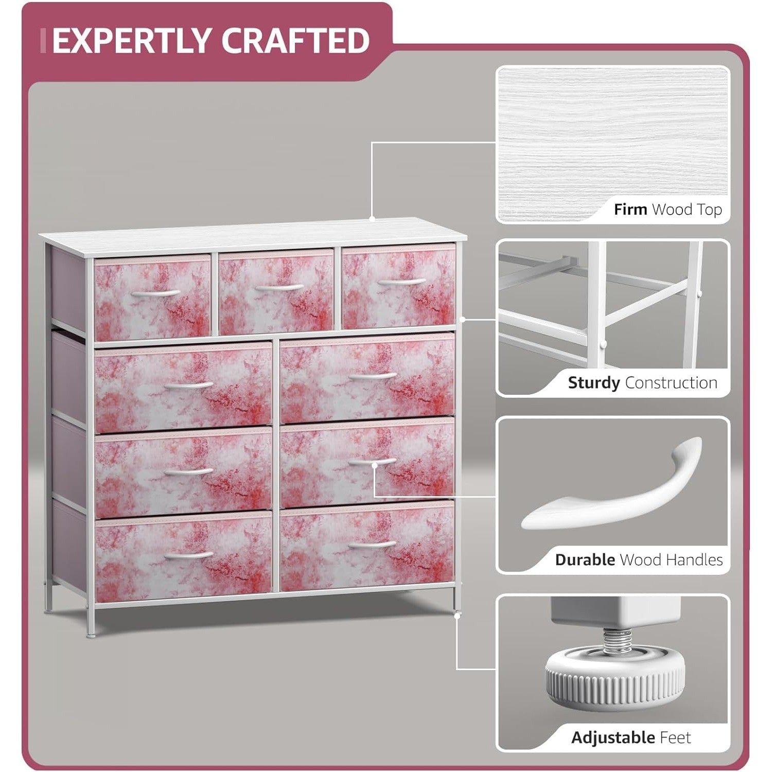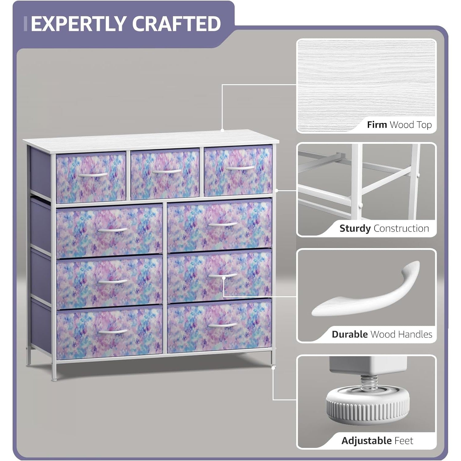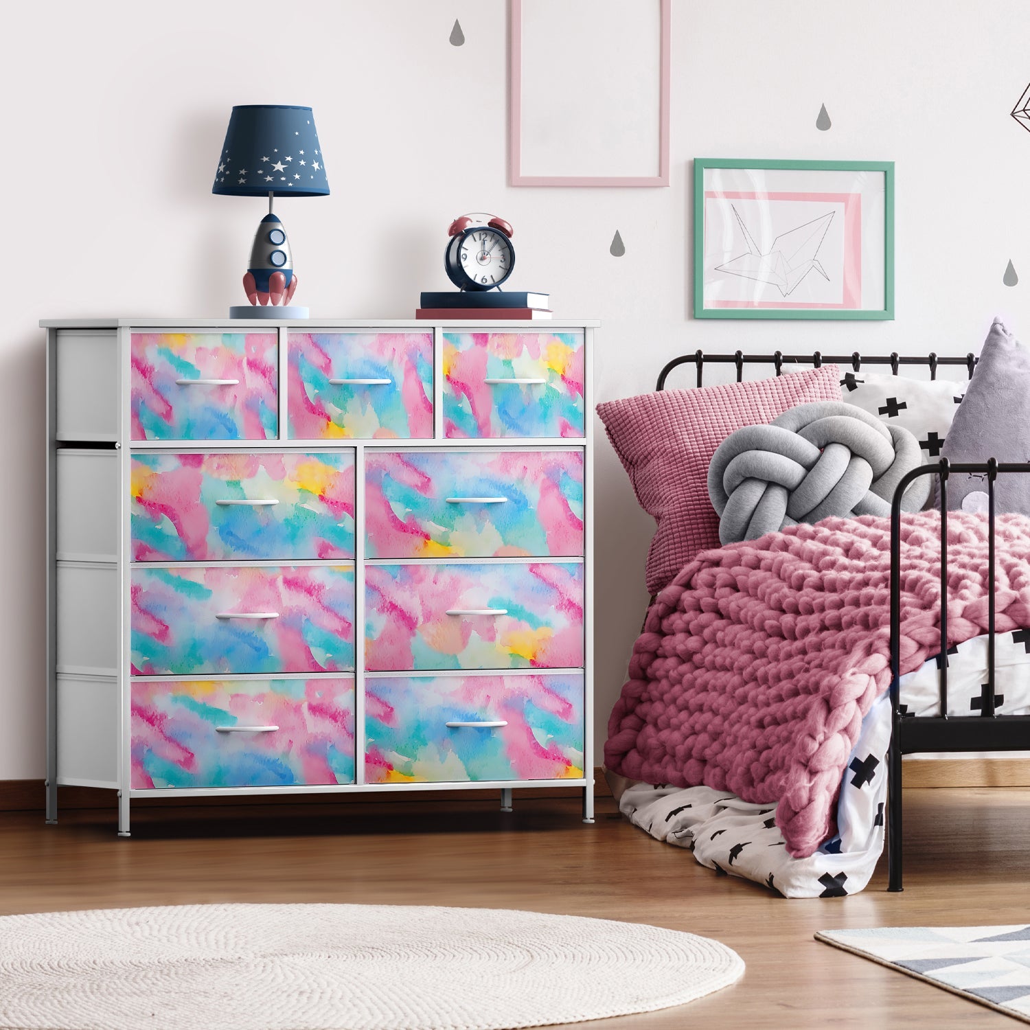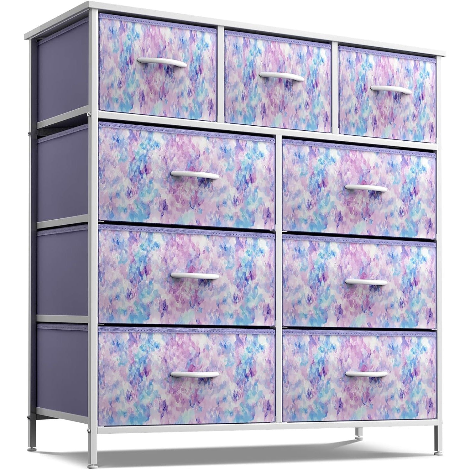 Update your child's room with our 9-Drawer Dresser. This colorful chest features a tabletop surface and pull-out drawers to tuck away household clutter. Place all of your child's folded t-shirts, jeans, and pajamas, or extra blankets and toys within the spacious fabric drawers. For display, the top surface can be used for lamps, books, clocks, and more. The playful color makes this dresser charming for any nursery, playroom, or bedroom. It is lightweight for easy transport and when not in use, simply fold the fabric drawers flat. Complete the look with similar styles from the Sorbus Storage Collection.