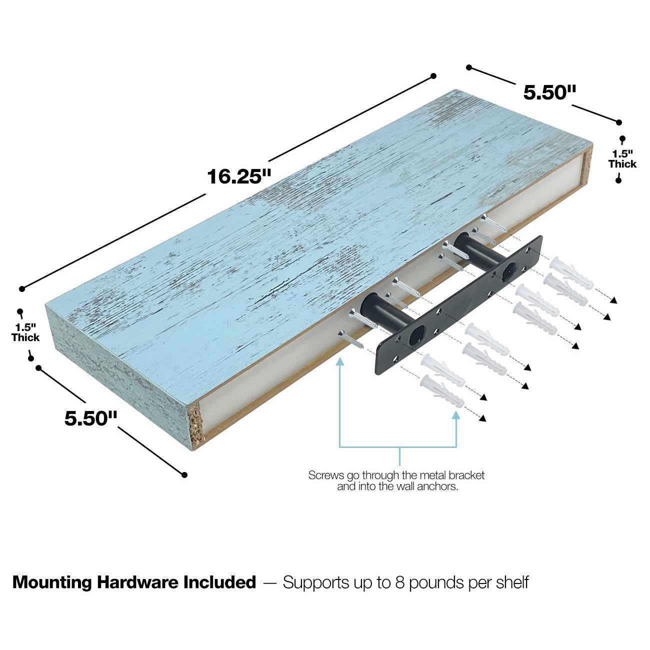 - Supports up to 8 pounds per shelf.