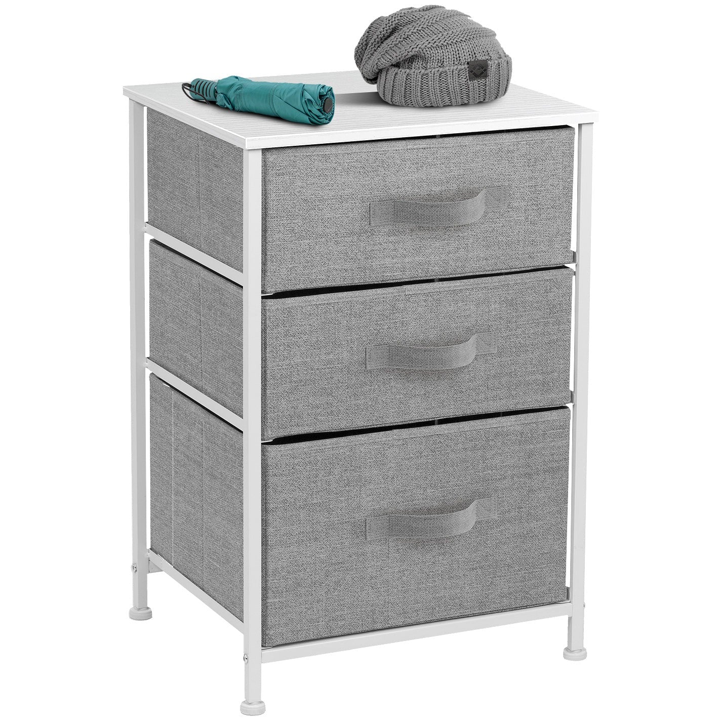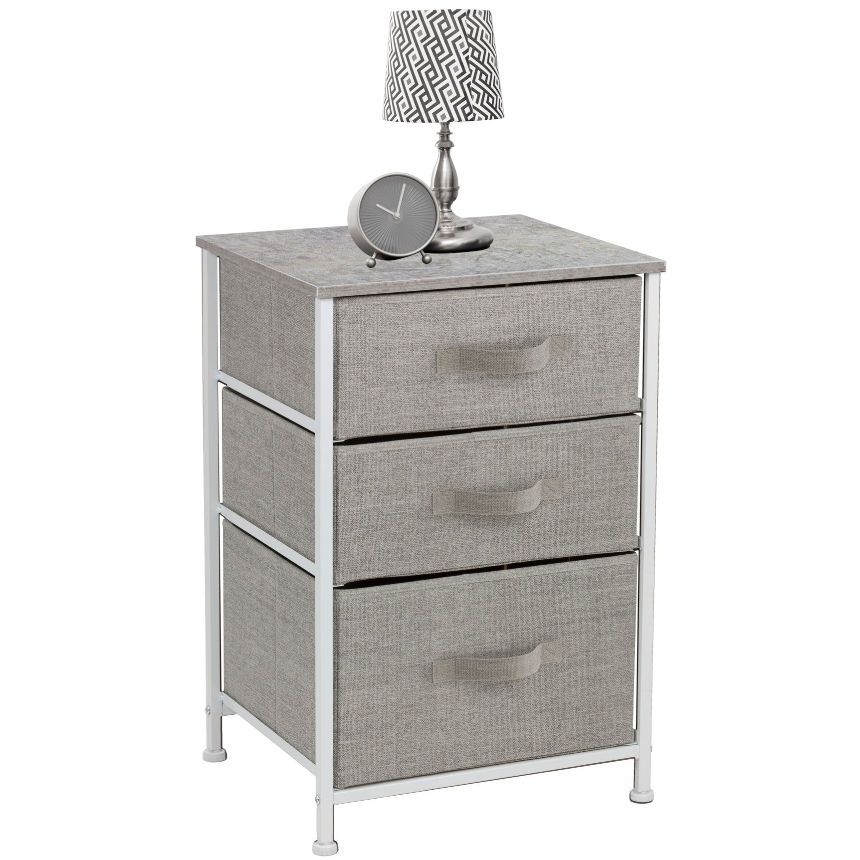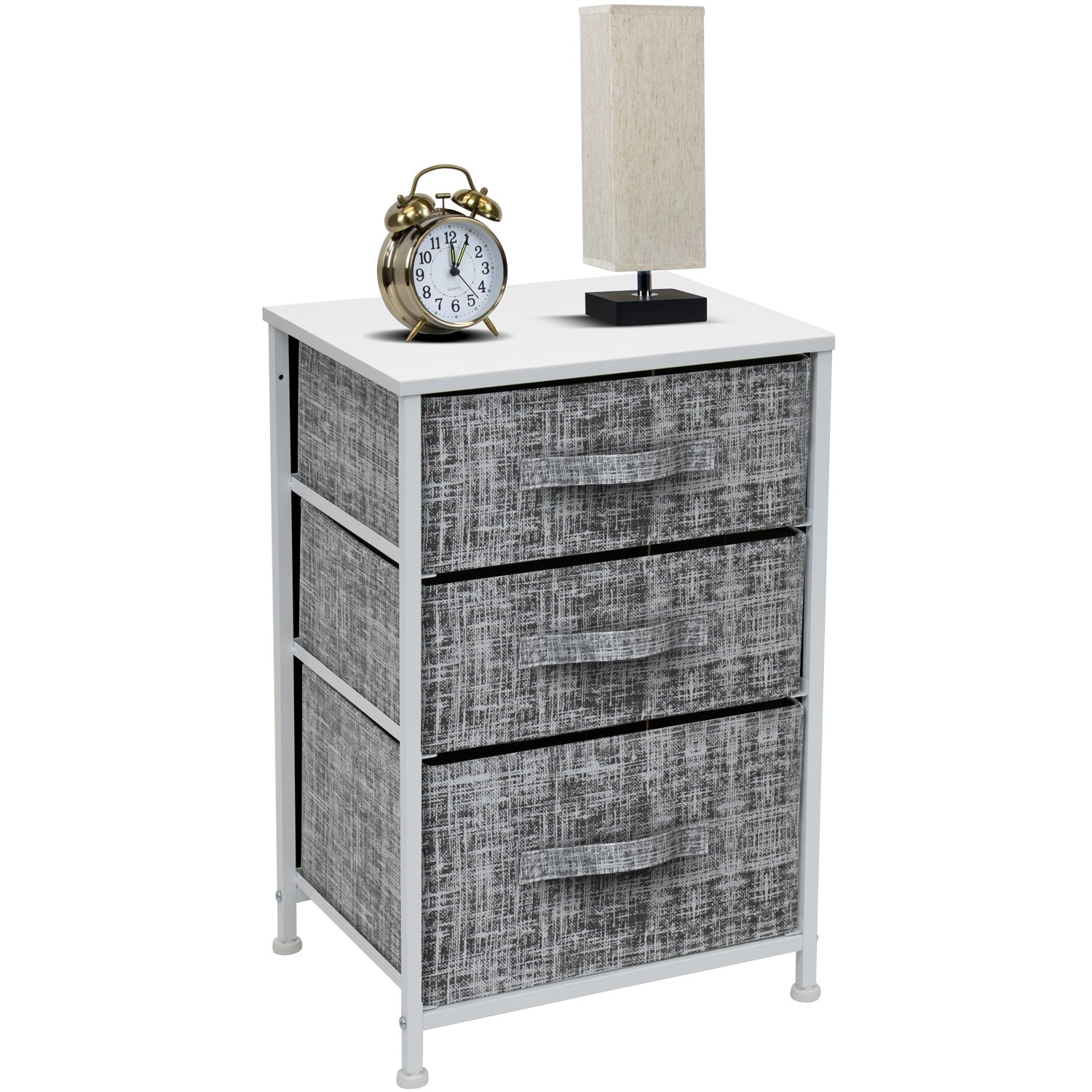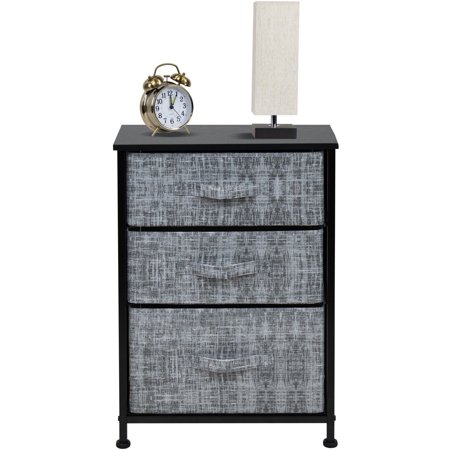 Give your bedside essentials a cozy landing spot with our 3-Drawer Nightstand. This beautiful chest features a tabletop surface and pull-out drawers to tuck away household clutter. The thoughtful design is compact for small living spaces and works equally well by the bed or sofa. Store anything from books, reading glasses, alarm clocks, and other knickknacks. The lightweight frame makes this unit easy to transport around the home and when not in use, simply fold the fabric drawers flat for storage. Use alone as a single nightstand or pair with any drawer configuration from the Sorbus Furniture Collection.