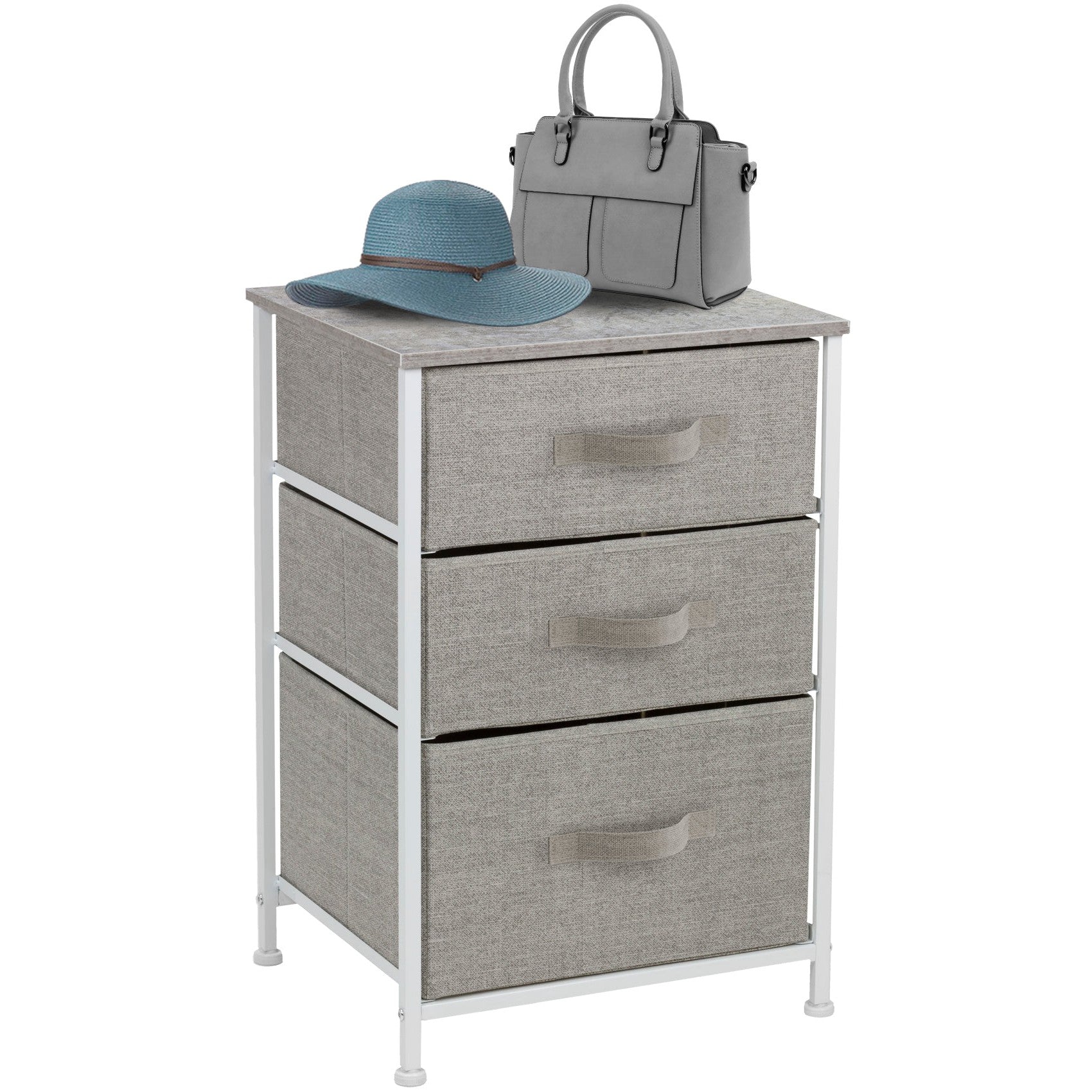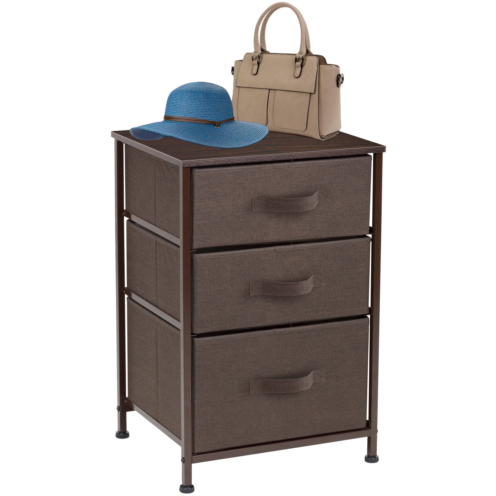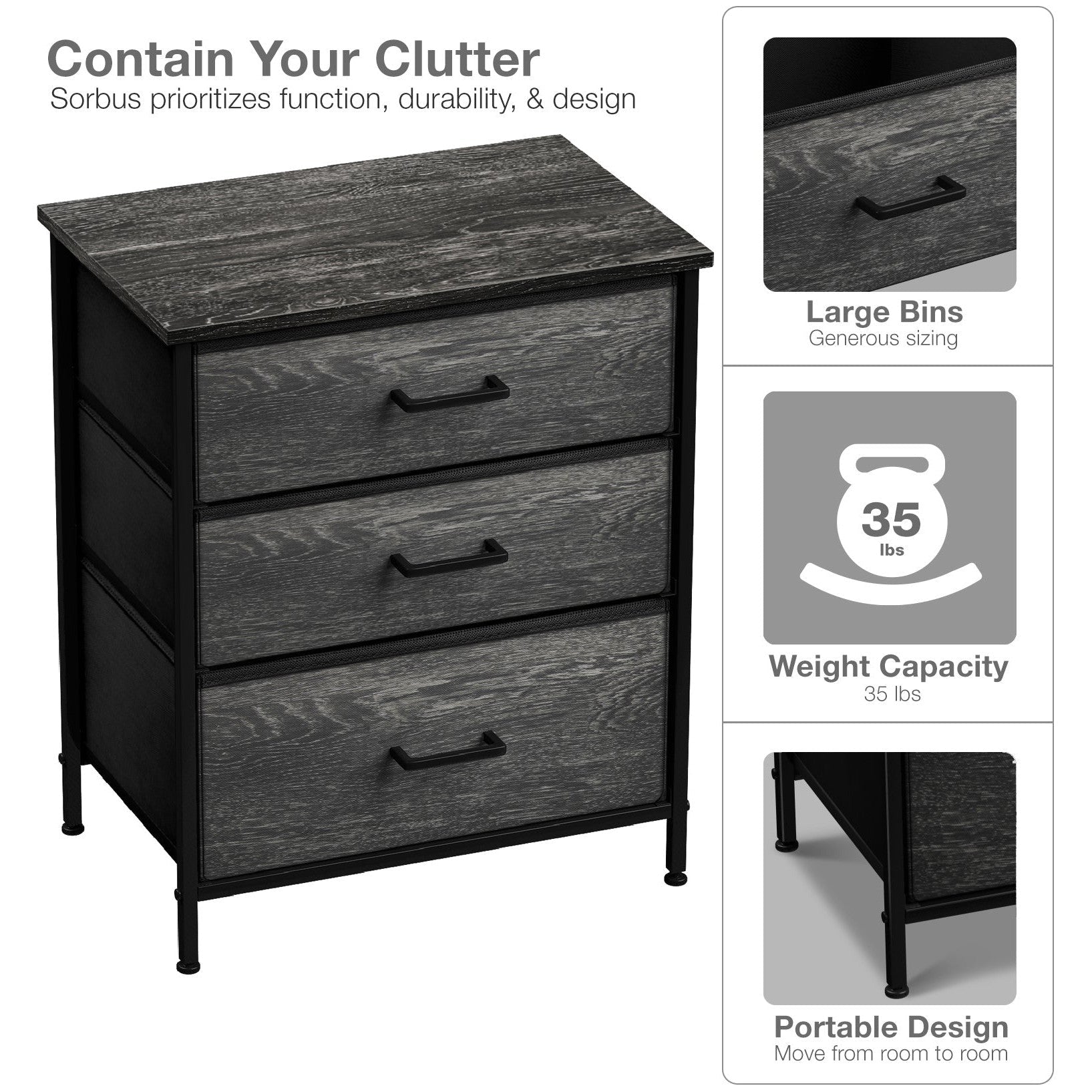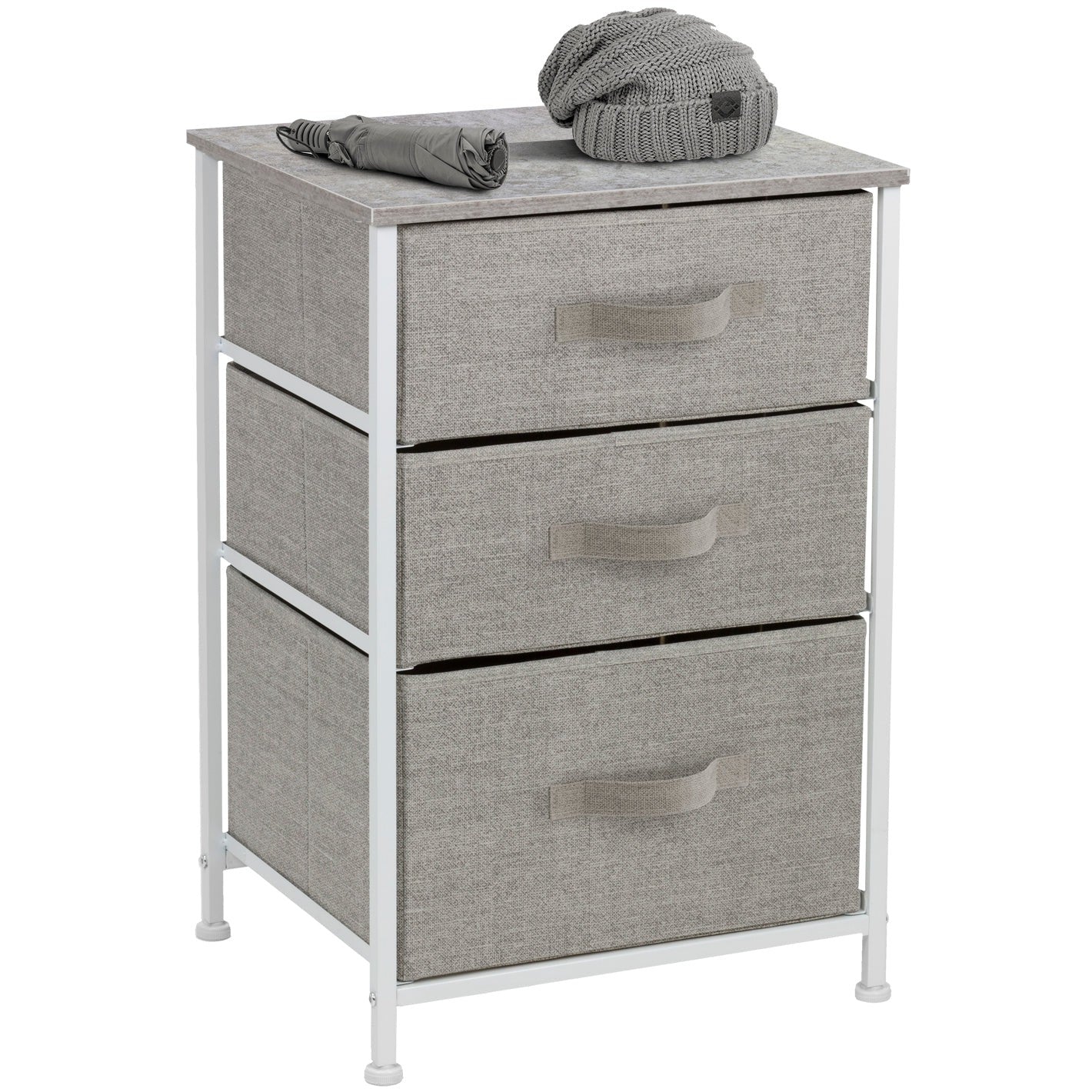 Give your bedside essentials a cozy landing spot with our 3-Drawer Nightstand. This beautiful chest features a tabletop surface and pull-out drawers to tuck away household clutter. The thoughtful design is compact for small living spaces and works equally well by the bed or sofa. Store anything from books, reading glasses, alarm clocks, and other knickknacks. The lightweight frame makes this unit easy to transport around the home and when not in use, simply fold the fabric drawers flat for storage. Use alone as a single nightstand or pair with any drawer configuration from the Sorbus Furniture Collection.