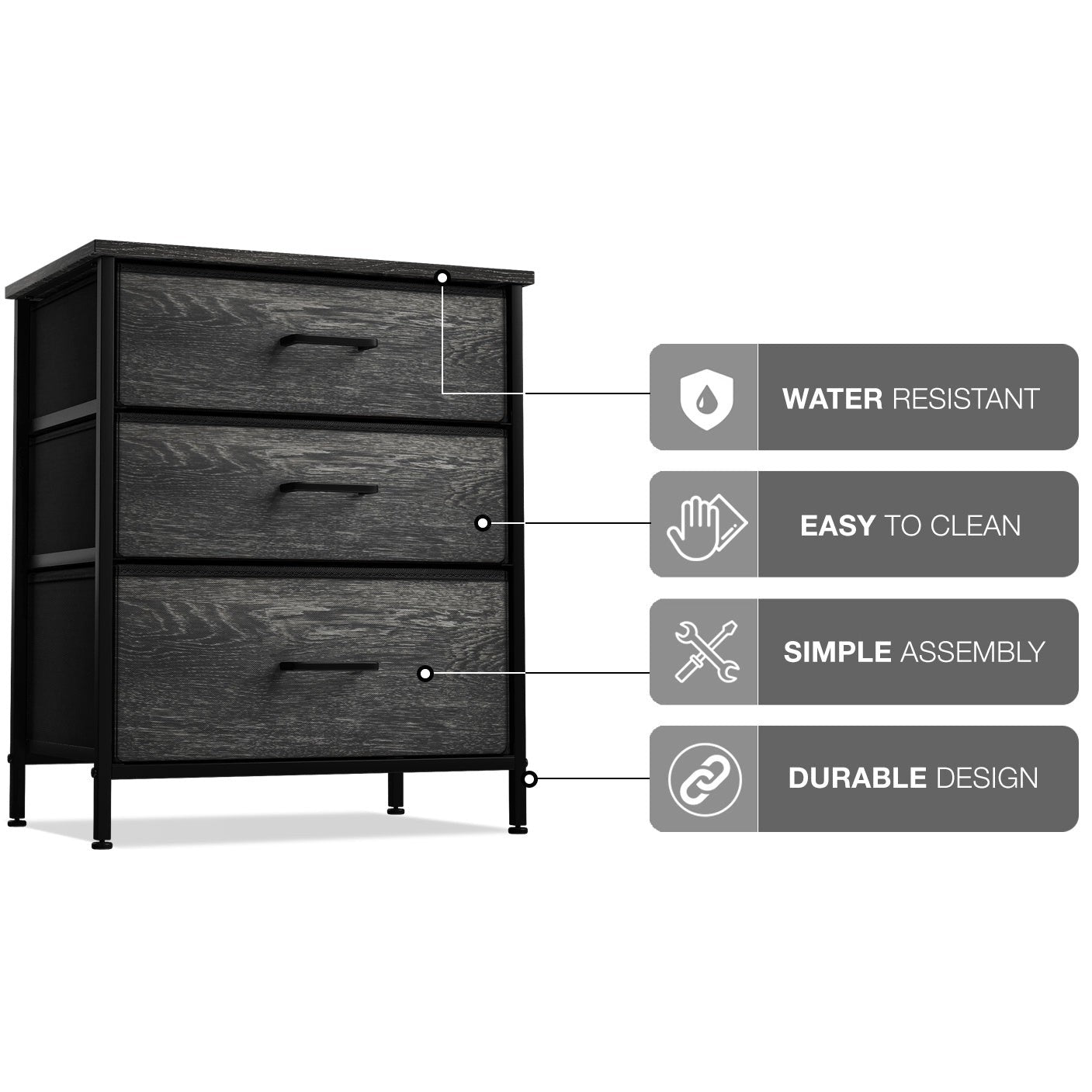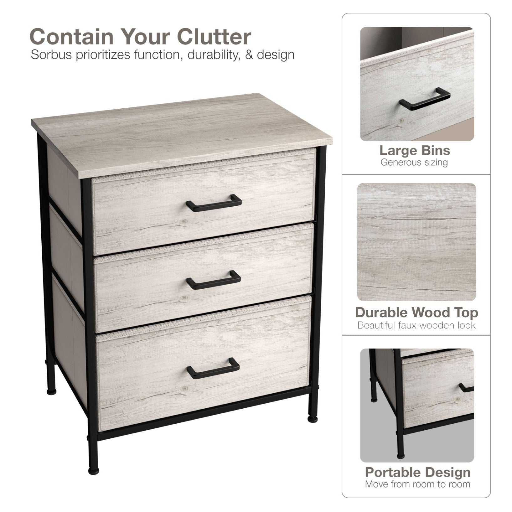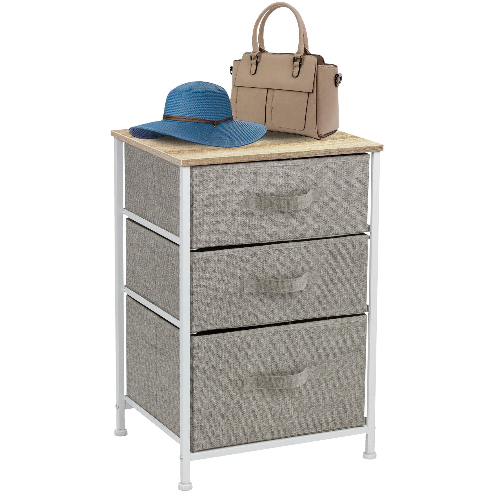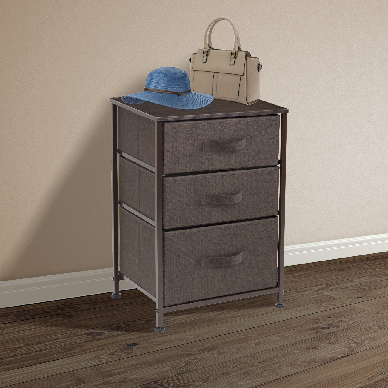 Give your bedside essentials a cozy landing spot with our 3-Drawer Nightstand. This beautiful chest features a tabletop surface and pull-out drawers to tuck away household clutter. The thoughtful design is compact for small living spaces and works equally well by the bed or sofa. Store anything from books, reading glasses, alarm clocks, and other knickknacks. The lightweight frame makes this unit easy to transport around the home and when not in use, simply fold the fabric drawers flat for storage. Use alone as a single nightstand or pair with any drawer configuration from the Sorbus Furniture Collection.