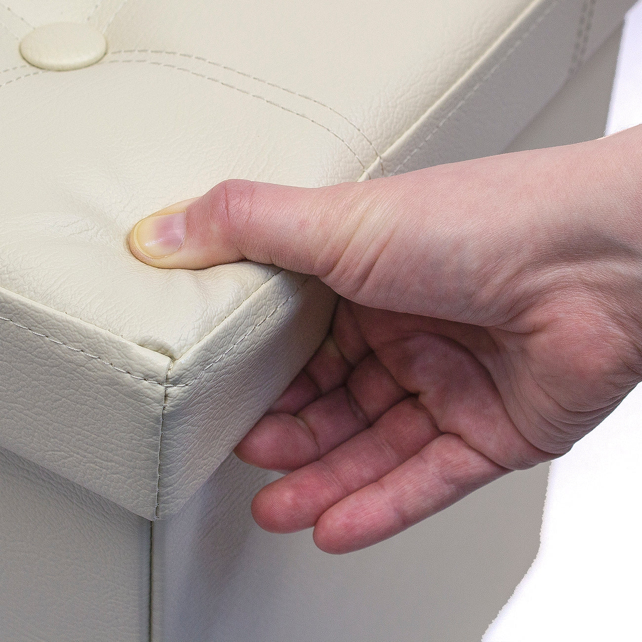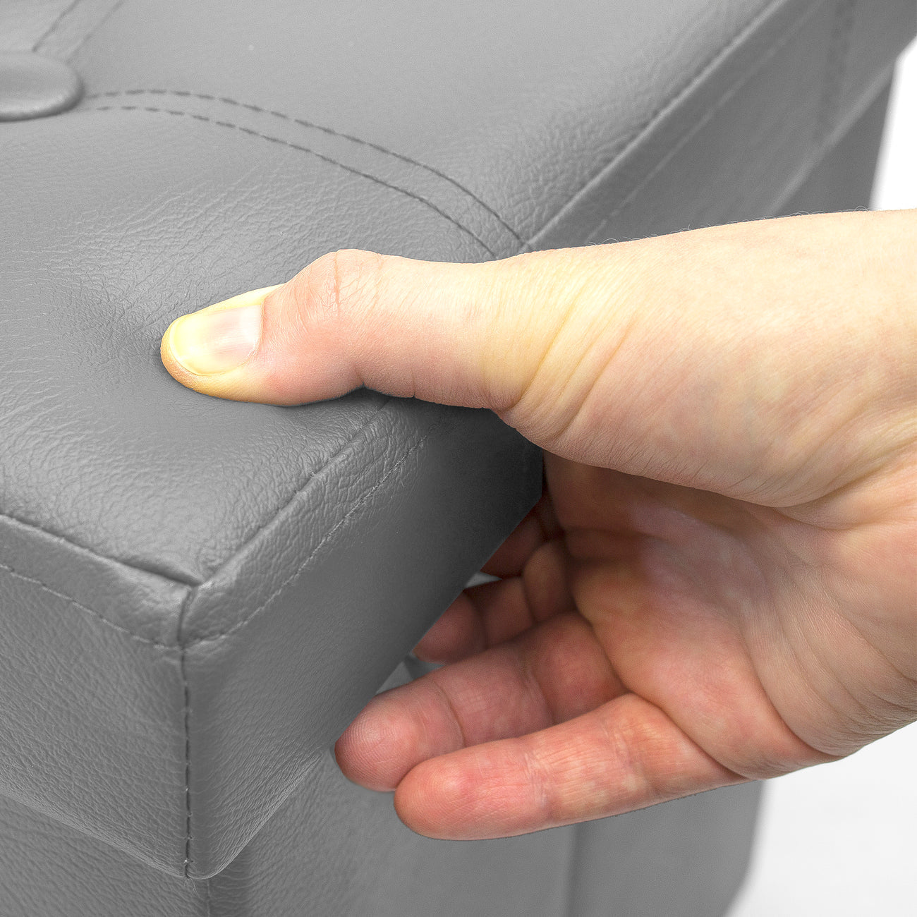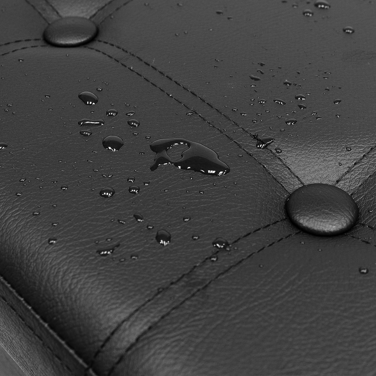 - Meticulous top stitching and button-tufting details