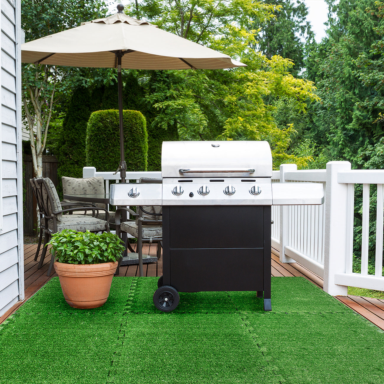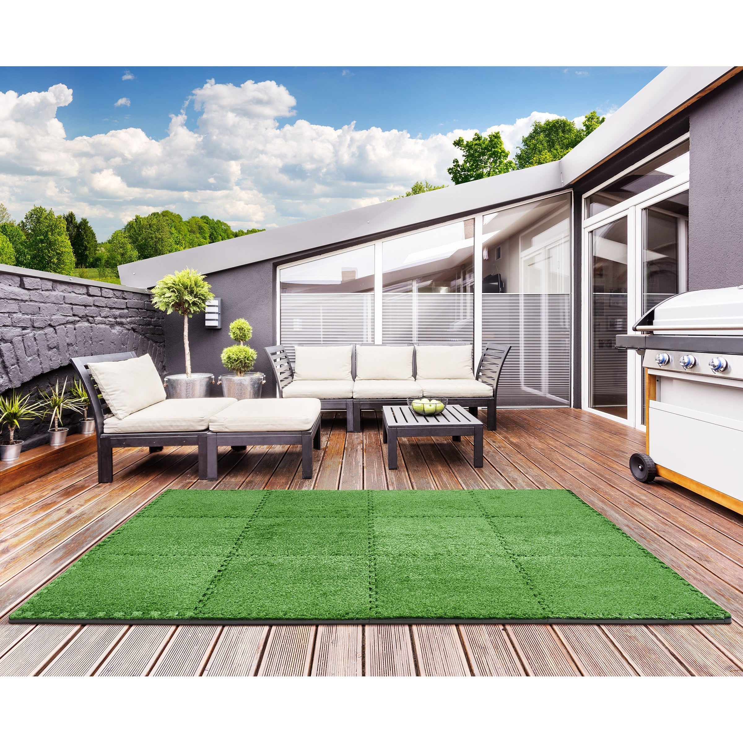 - Also makes a great outdoor artificial grass mat for patio, deck flooring, gazebos, walkways, garden paths, rooftop, picnic, play-areas under party tents, wedding tents, canopies