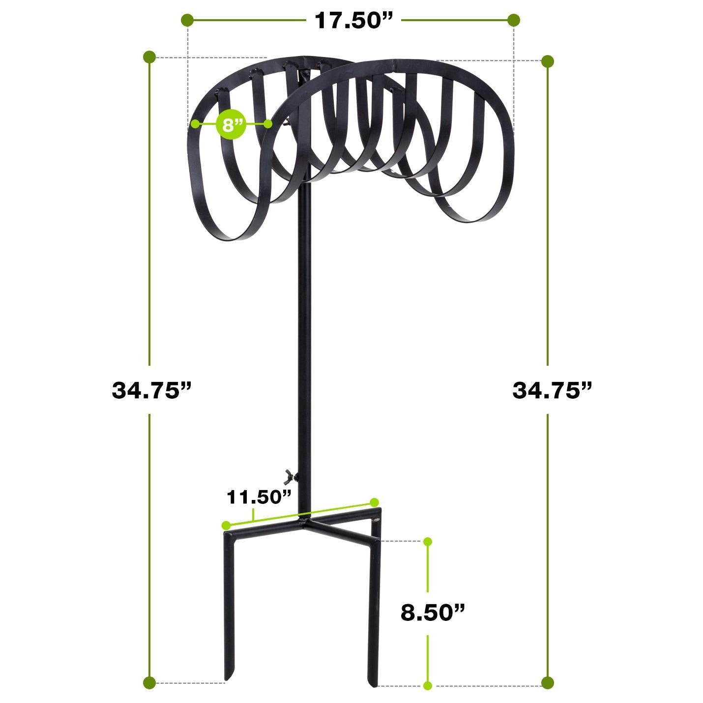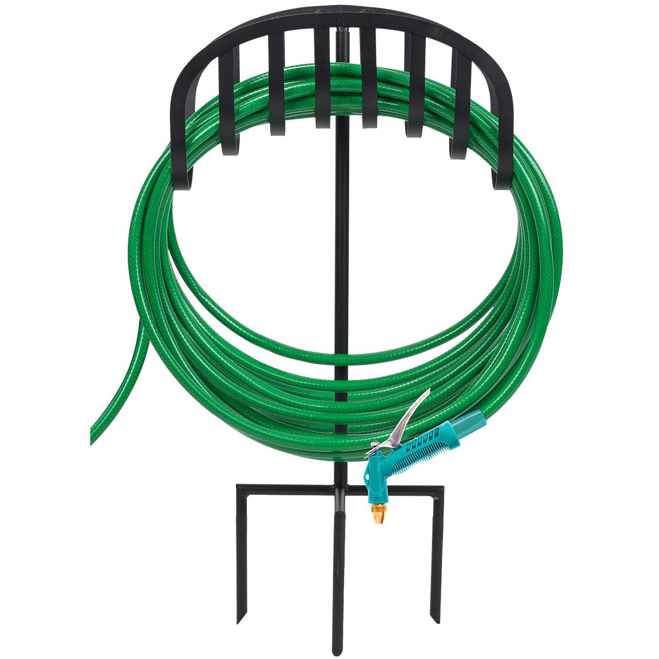 Tired of your tangled hose? Wrangle it up with the Sorbus Garden Hose Stand. Featuring a manger style hose caddy and 3-prong ground stake, it neatly stores up to 125' of a 5/8" hose. Simply step down to install the heavy-duty hose holder stake into the ground near any flower bed, vegetable garden, yard, lawn, and more! No more piles of hose cluttering the exterior of your home.