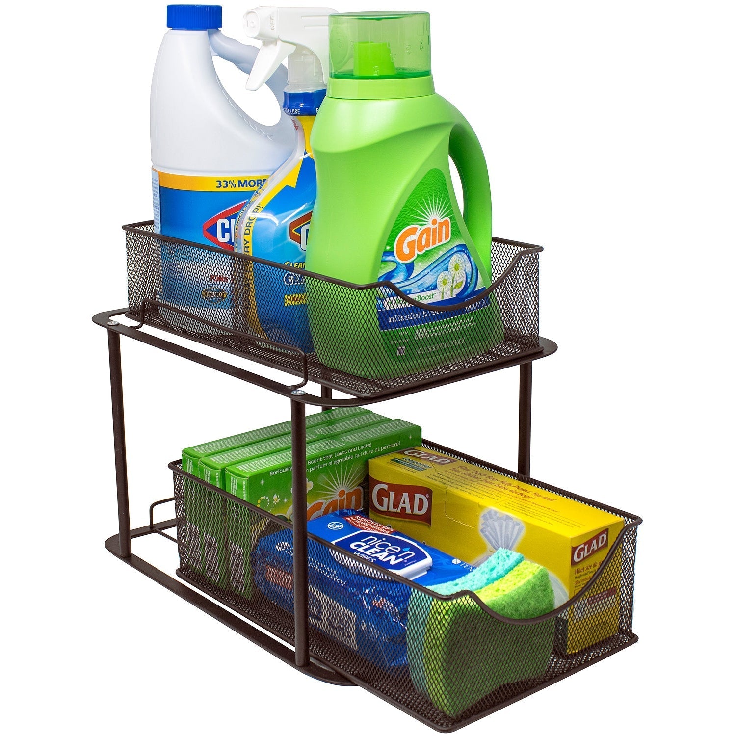 Are you tired of digging through clutter to find household items? Quickly access cleaning supplies, spices, produce, or office supplies with the Sorbus 2-Tier Basket Organizer. The two-level design maximizes your storage space, bringing items front and center with pull out drawers. For kitchen organization that fits your every need, turn your tight spaced pantry into an organized spice collection. Create storage in lower cabinets for canned goods and baking supplies or under the sink for cleaning products and miscellaneous items. The possibilities are endless!