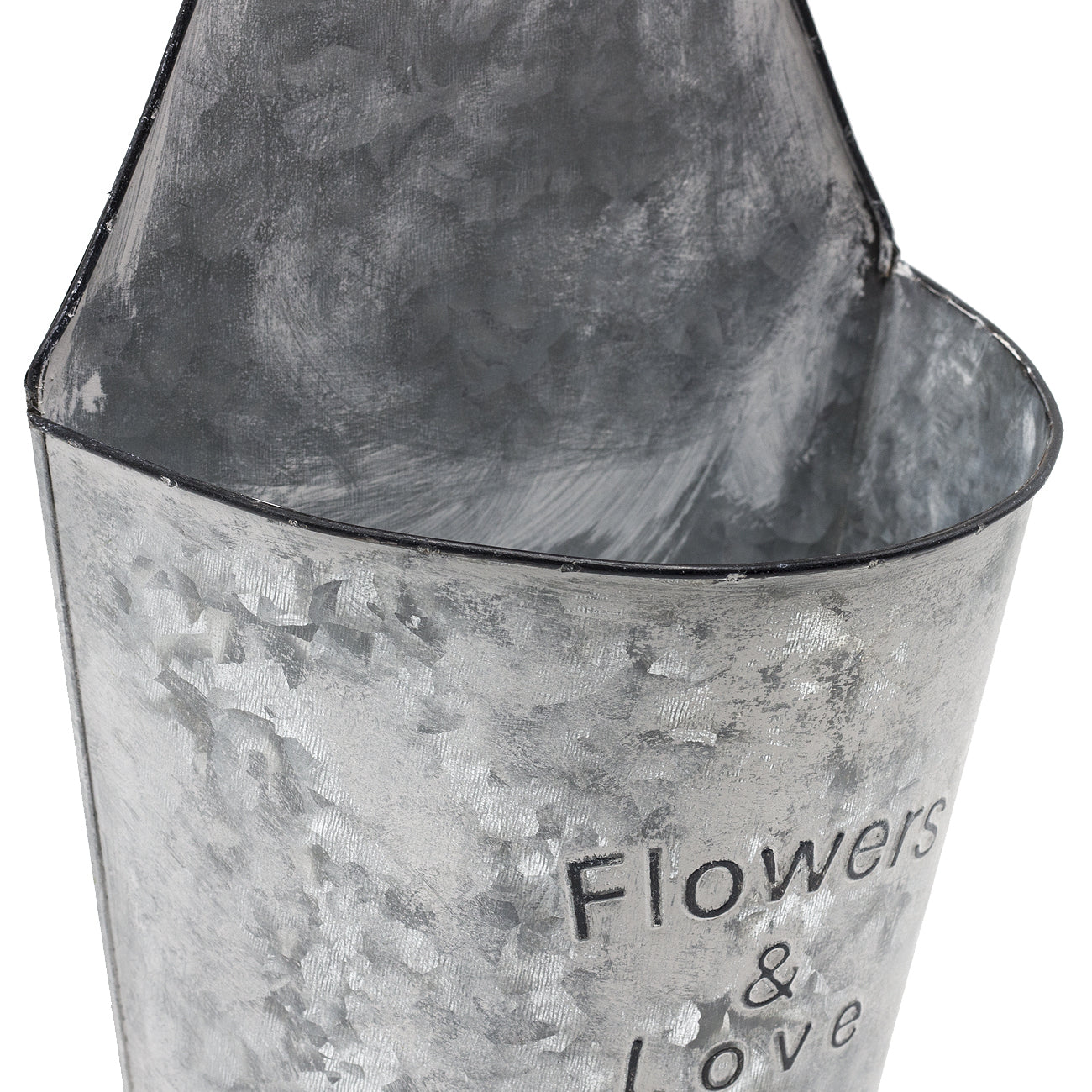 Bring flowers and love to your home with the Sorbus Wall Pocket Planter. Designed with rustic charm, this hanging planter highlights your favorite flowers and plants with simplistic beauty. It features a distressed half bucket design with Flowers & Love printed on the front. Simply mount to your wall, door, fence, under a windowsill, trellis, or deck railing with the included hardware. A distressed silver finish blends with most decor while making a lovely accent to your home, garden, or patio.