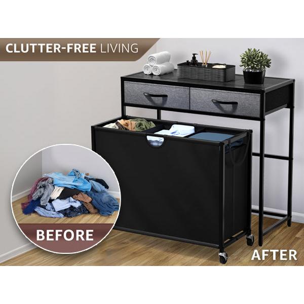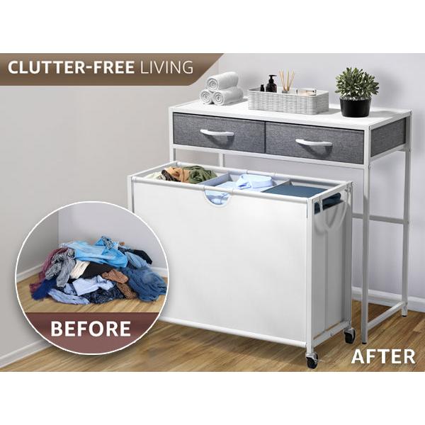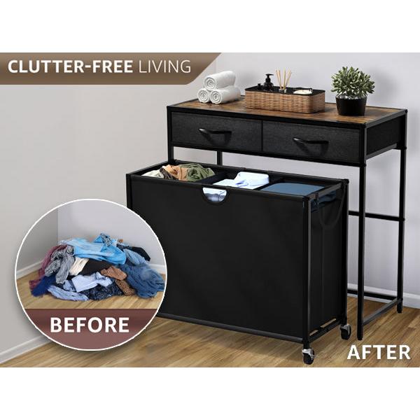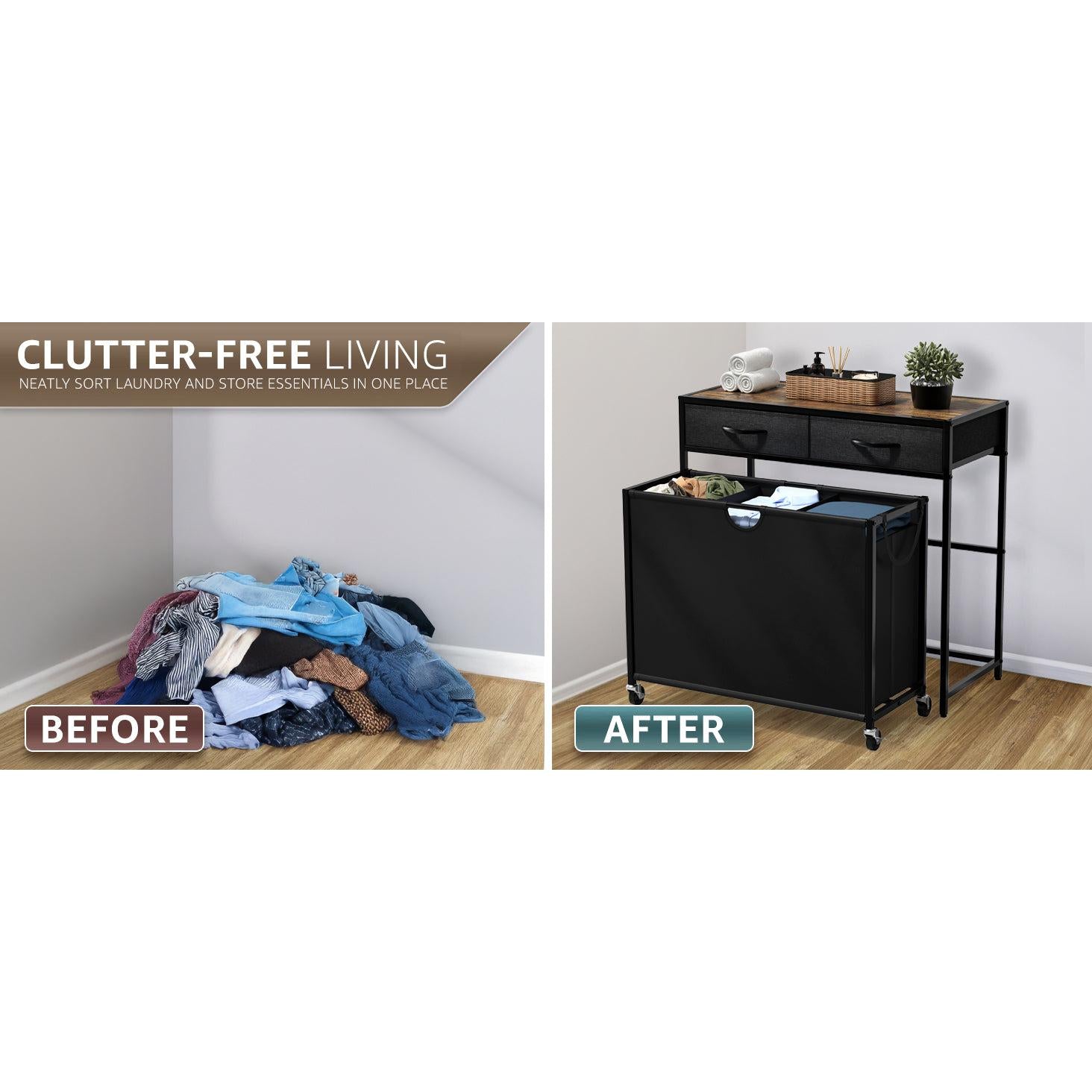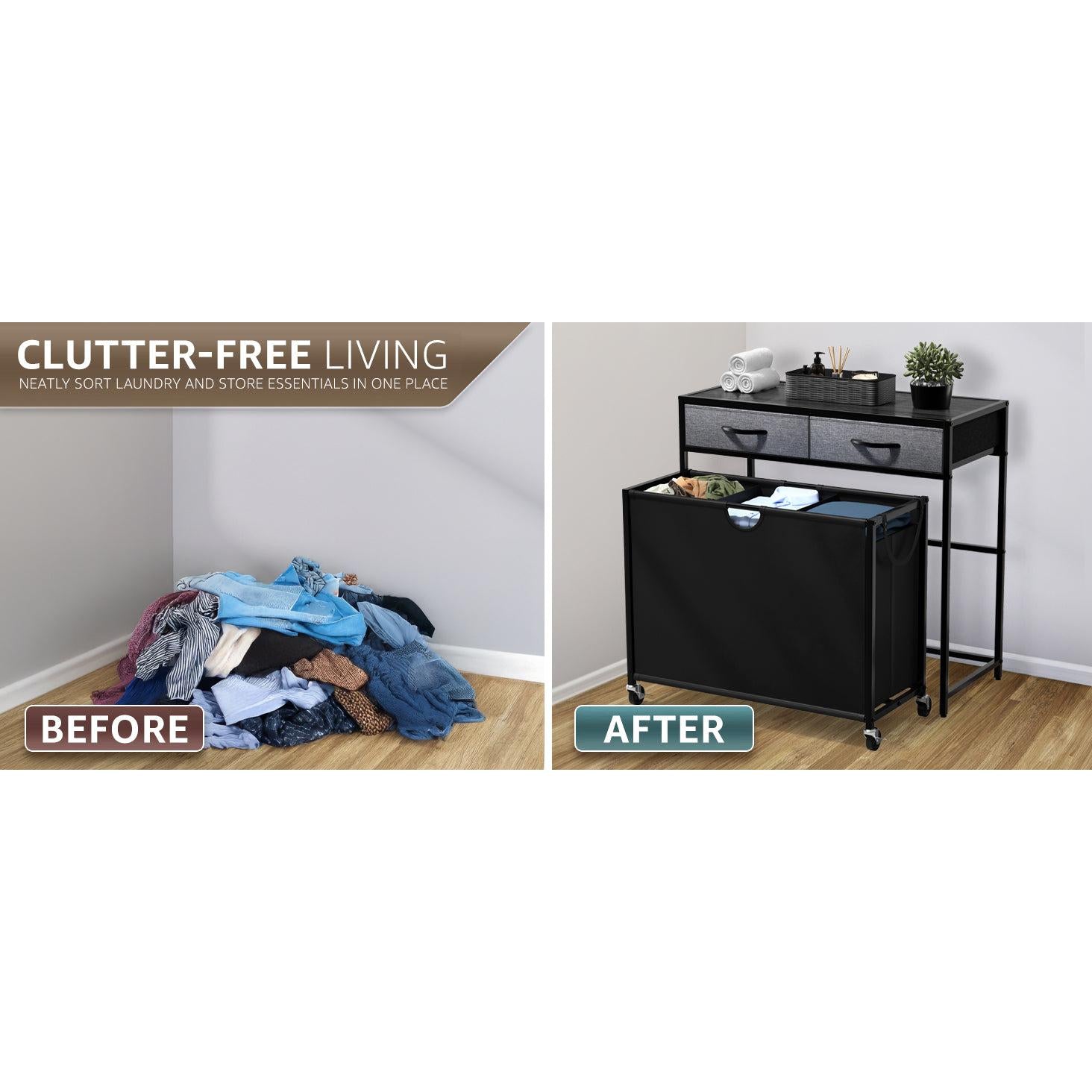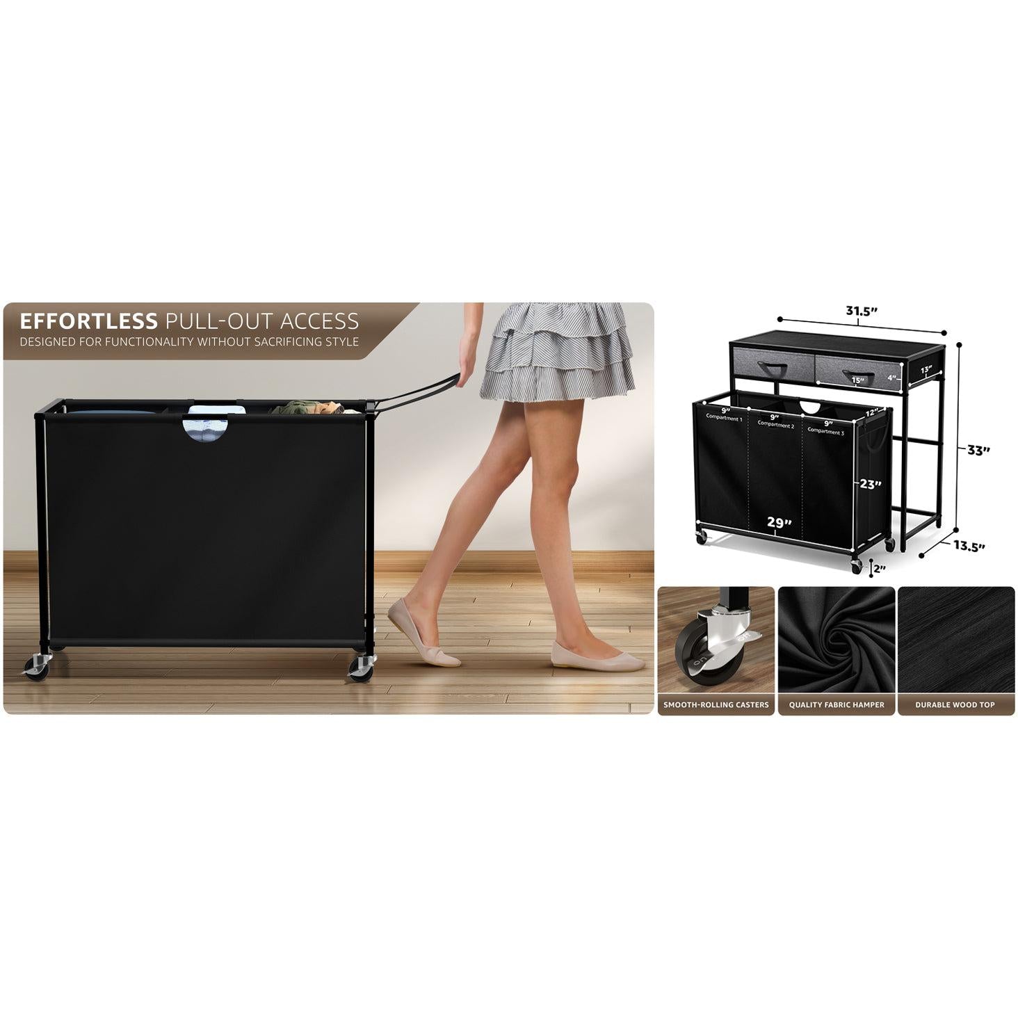 Introducing the Sorbus 3 Section Laundry Hamper with Shelf and 2 Drawers, a sophisticated solution for all your laundry room organization needs. This rolling pull-out laundry hamper is elegantly designed to enhance your laundry room storage while providing an efficient way to sort and manage your laundry. With its integrated laundry room cabinets and sleek design, this product is not just a large laundry basket but a complete laundry room organizer.