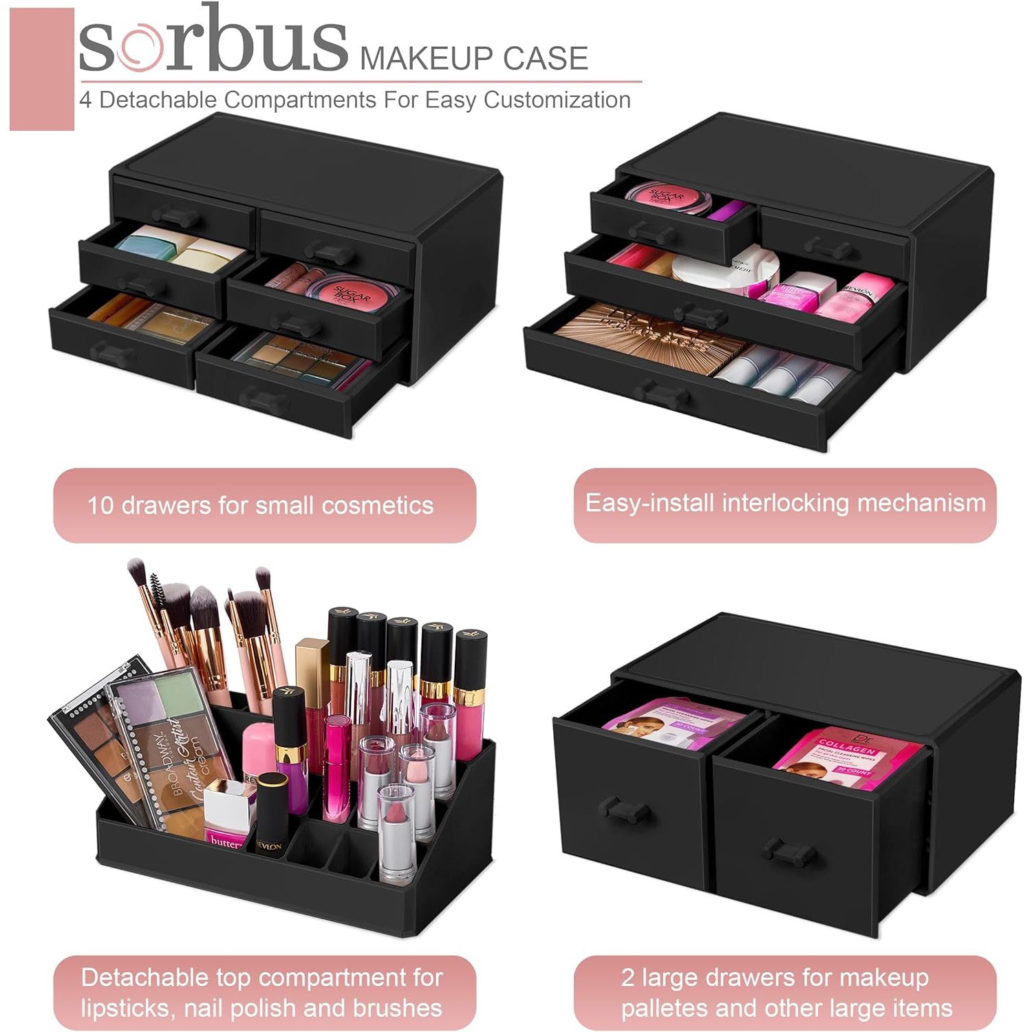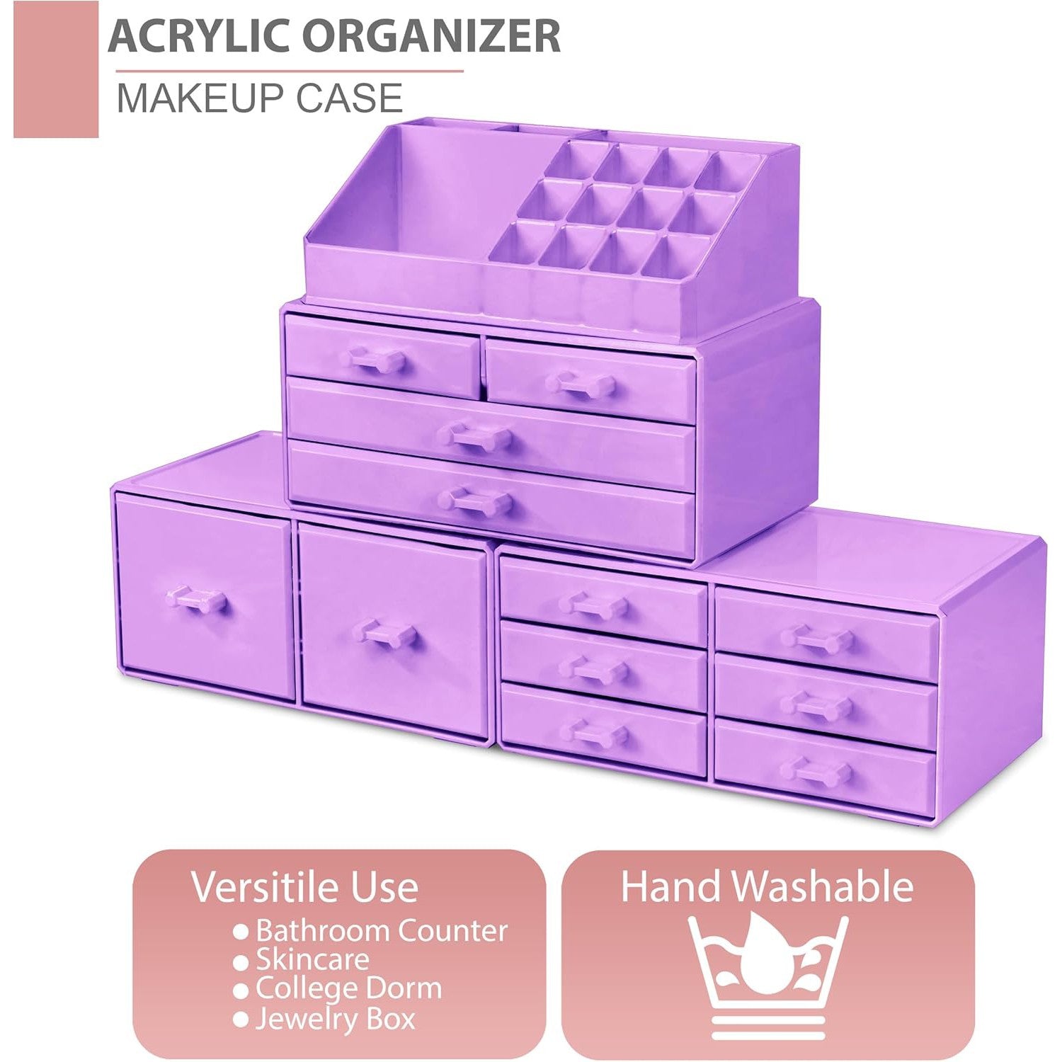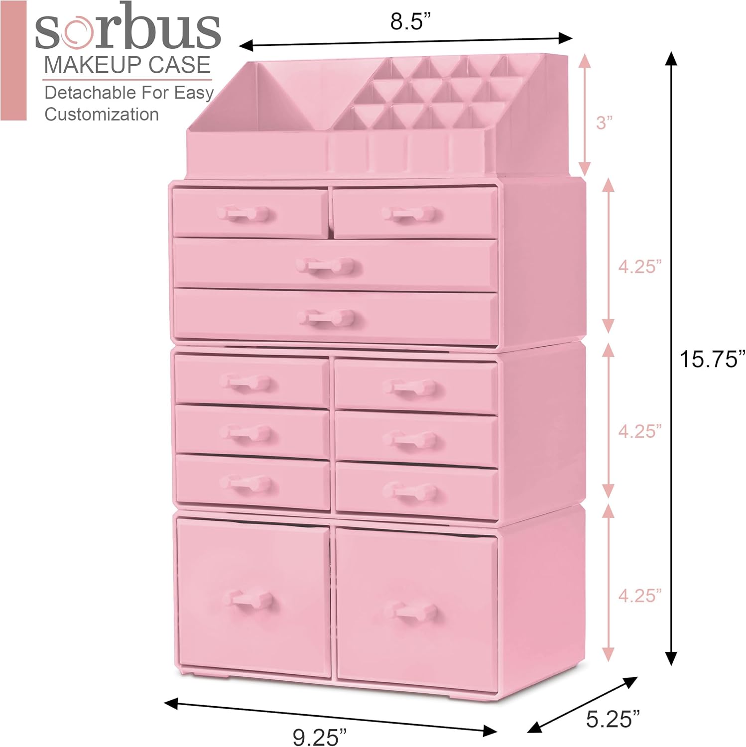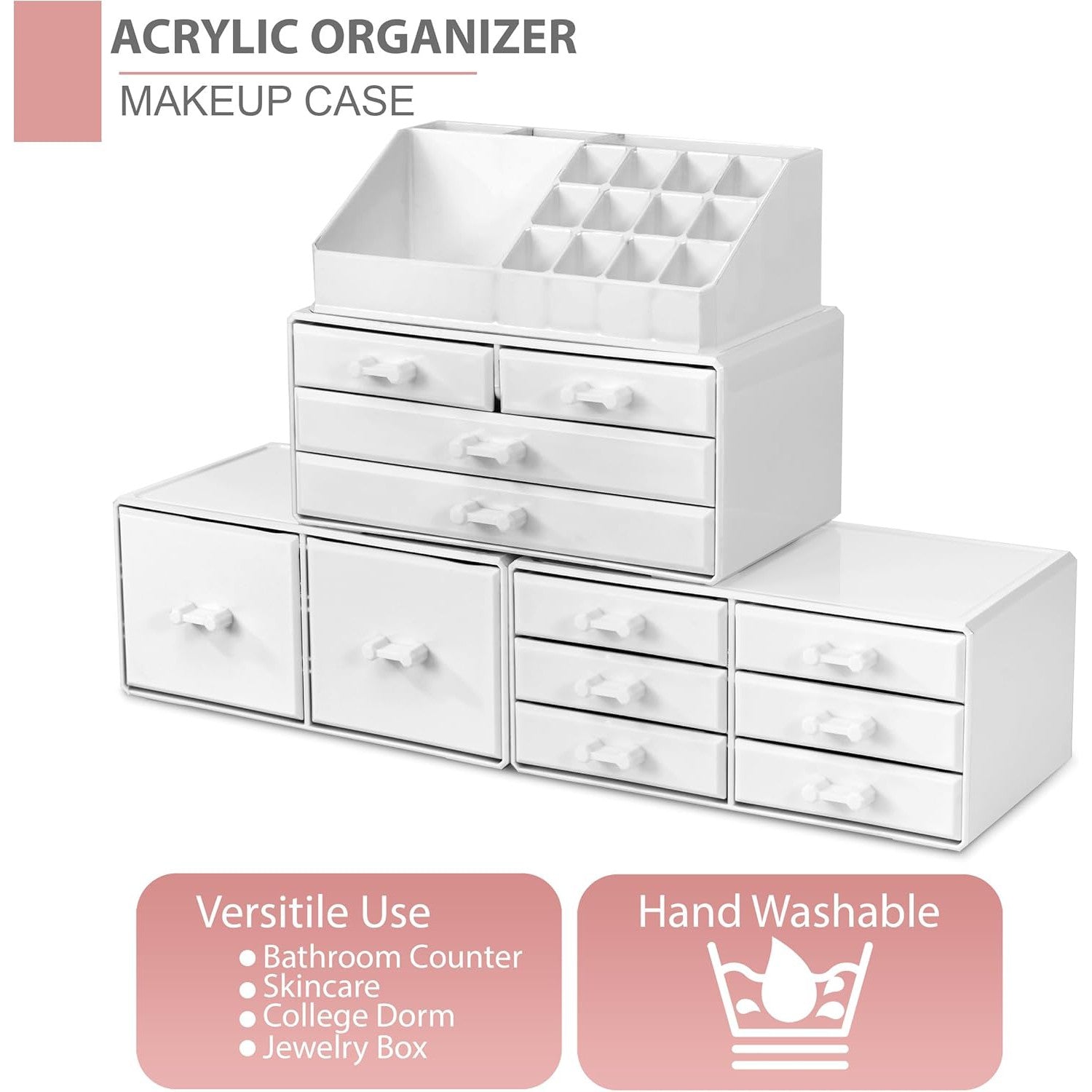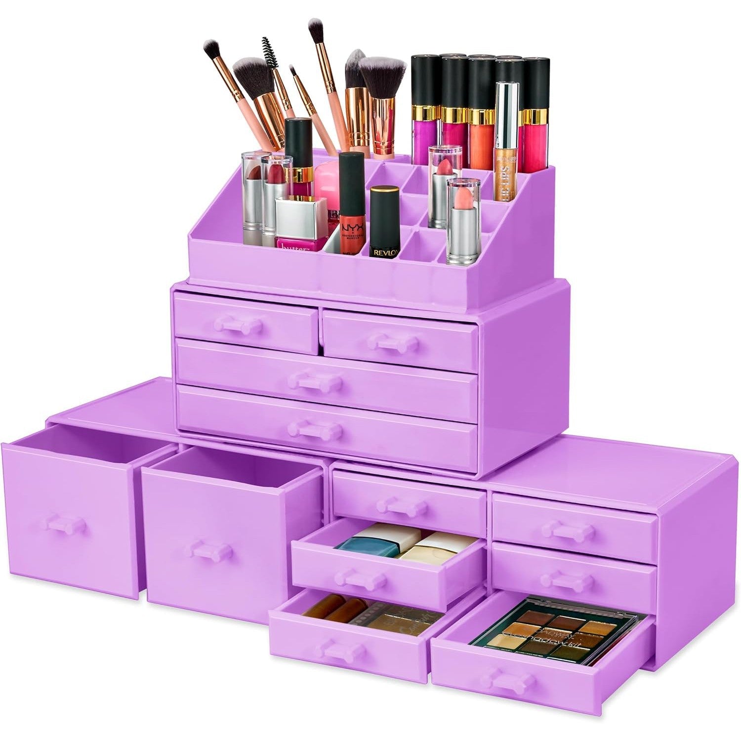 Its detachable 4-piece set includes various compartments and drawers to suit your preferences, stackable and interchangeable for versatility. Compatible with additional Sorbus organizers, it's perfect for any beauty enthusiast and makes a great gift for teens, college students, or adults. With its stylish design and durable acrylic construction, this organizer beautifully displays and protects your makeup and accessories, making it a must-have for any makeup lover.