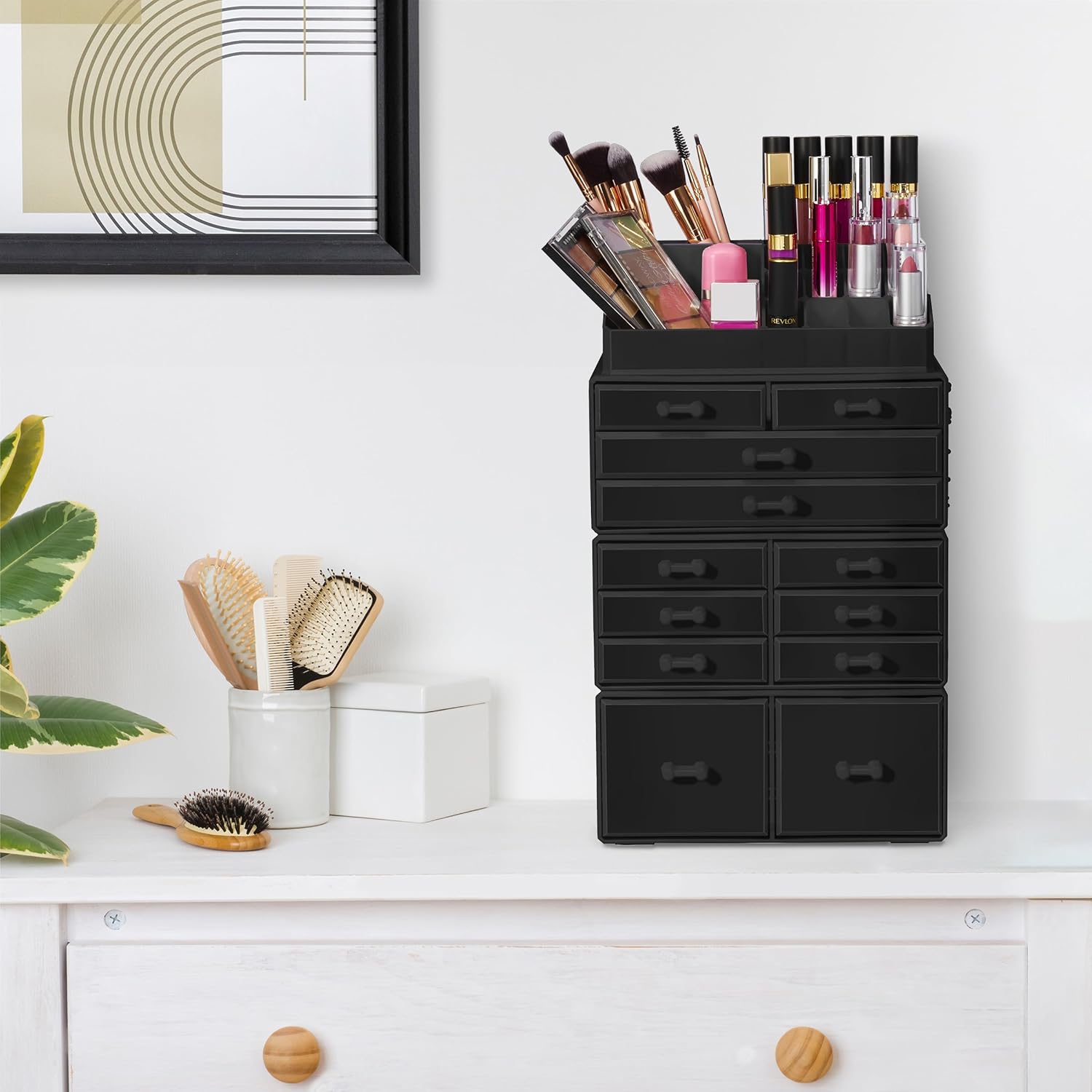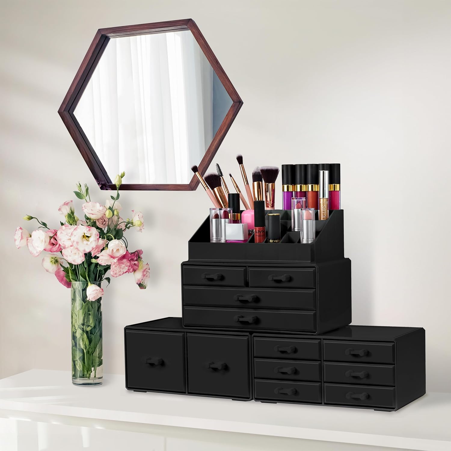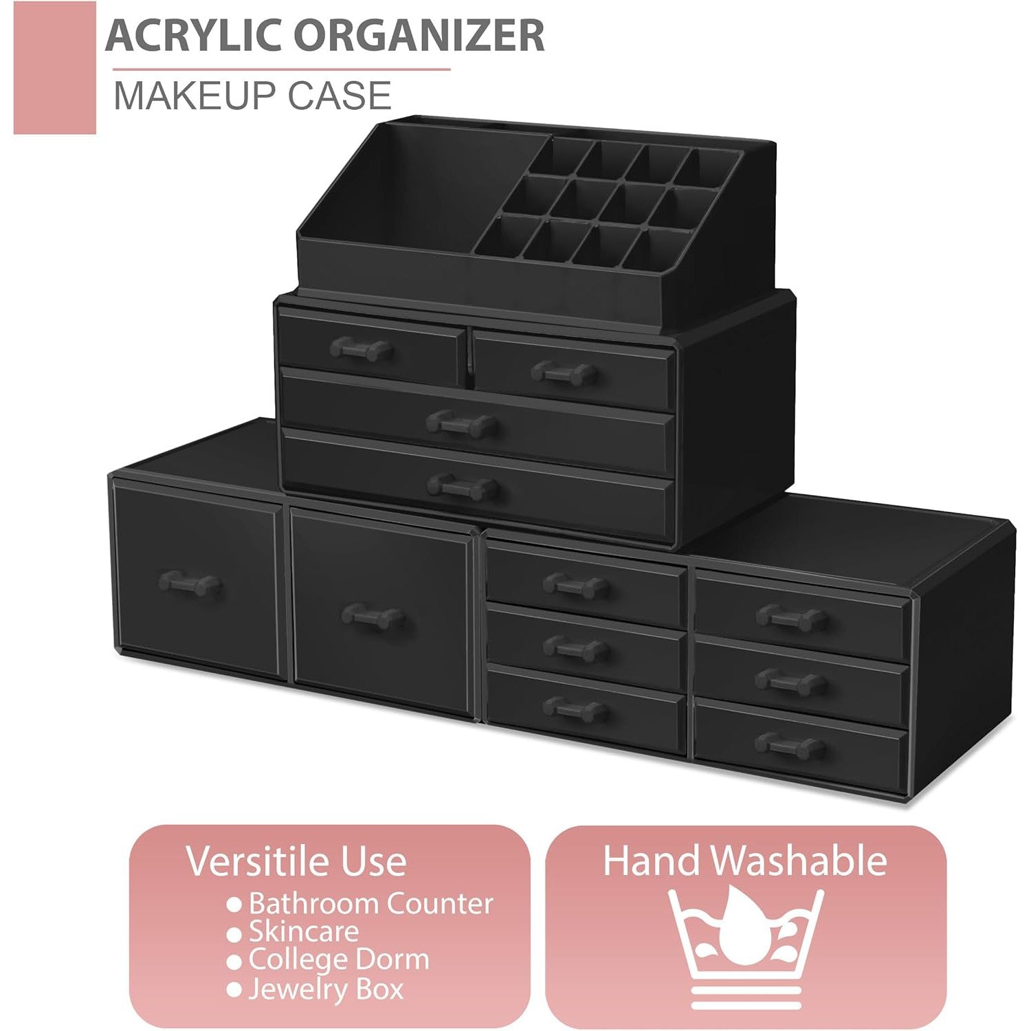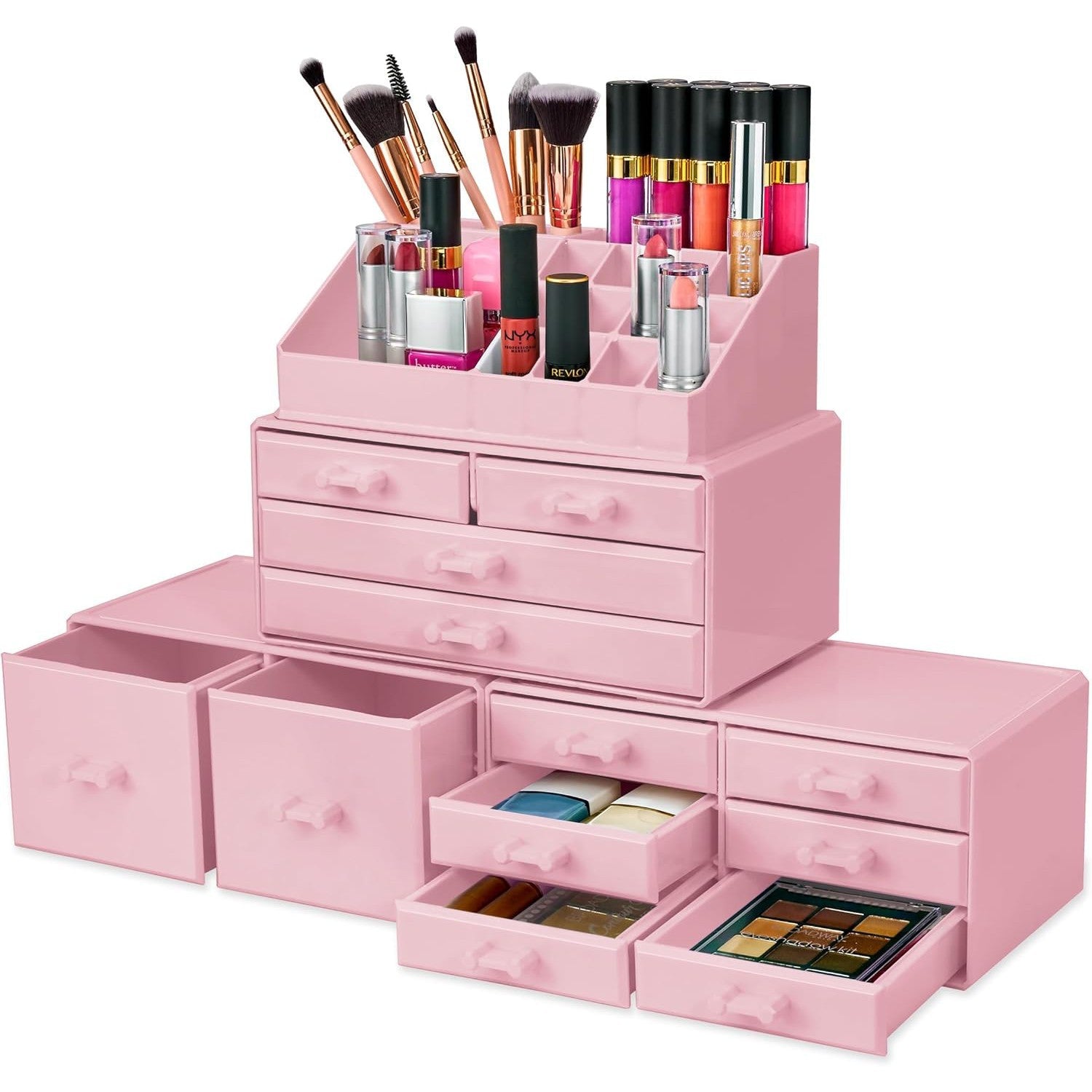 Its detachable 4-piece set includes various compartments and drawers to suit your preferences, stackable and interchangeable for versatility. Compatible with additional Sorbus organizers, it's perfect for any beauty enthusiast and makes a great gift for teens, college students, or adults. With its stylish design and durable acrylic construction, this organizer beautifully displays and protects your makeup and accessories, making it a must-have for any makeup lover.