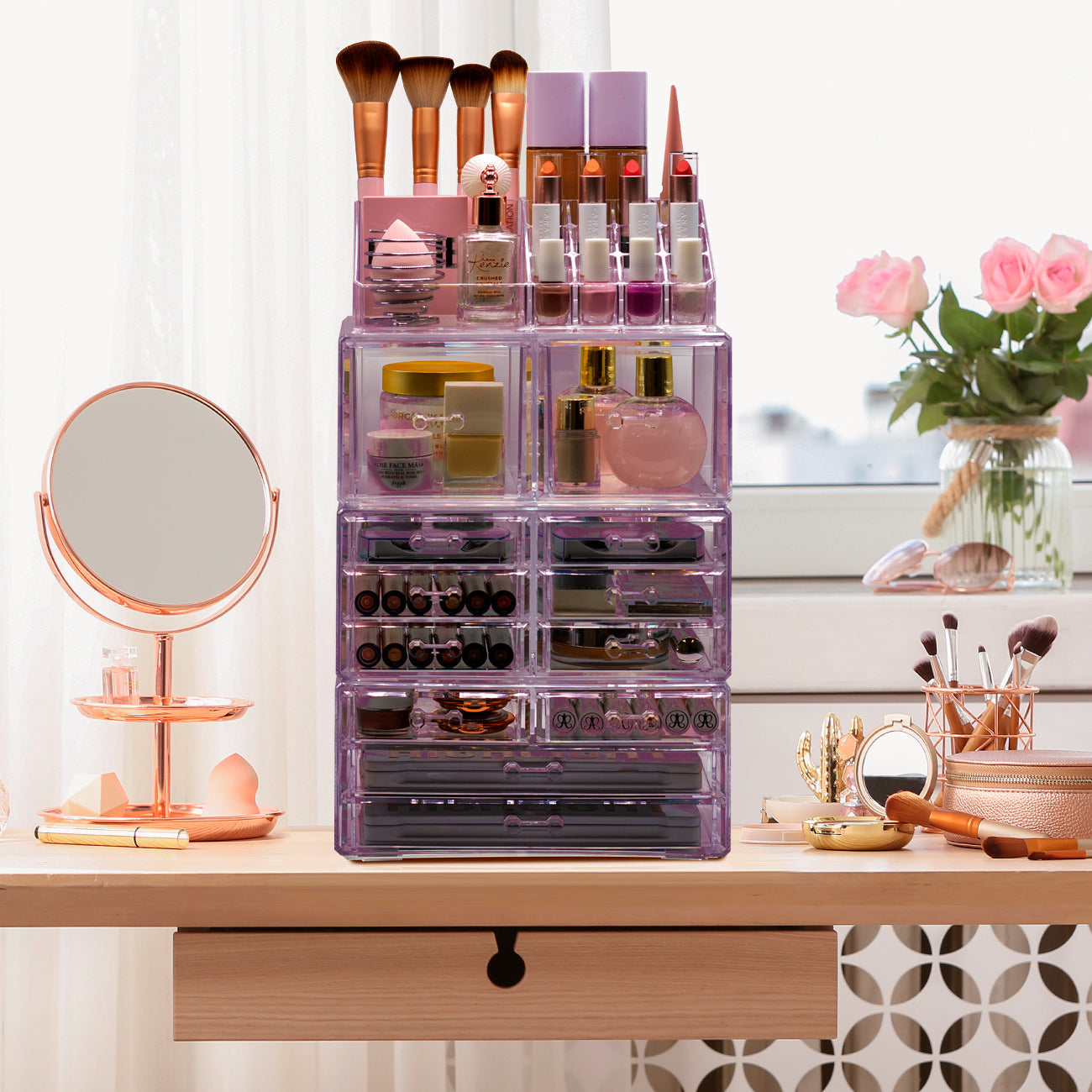 - Spacious for cosmetics, skincare, jewelry, and accessories.