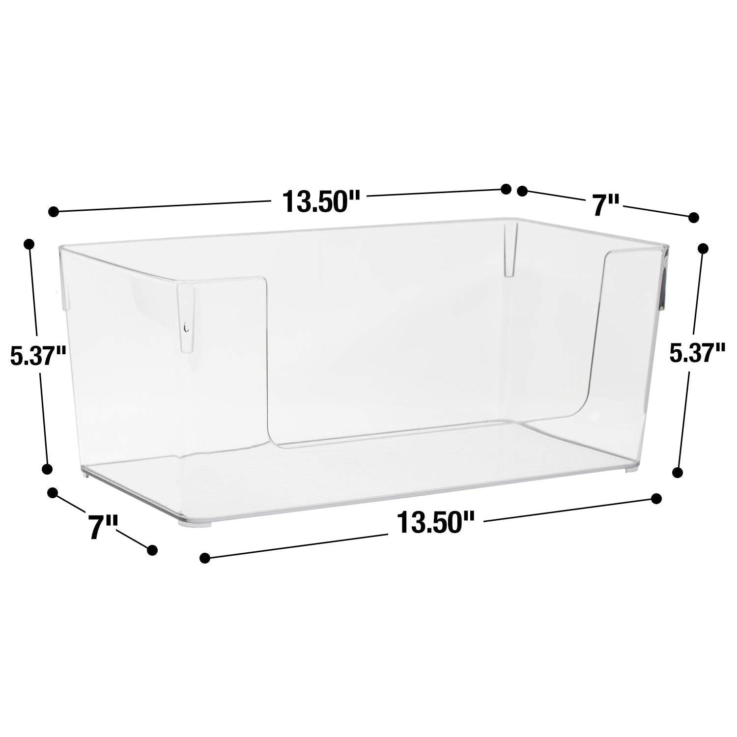 Whether you're stocking the pantry, making a grocery list, or tidying up household clutter, these container bins organize your essentials with a clear view! This set includes two large rectangular bins with an open front for easy access. A transparent design allows you to quickly see what's stored inside and group contents by type. Store anything from kitchen spices and snacks to toys and cosmetics. When not in use, simply stack them together to maximize space. Most of all, enjoy your clutter-free home.