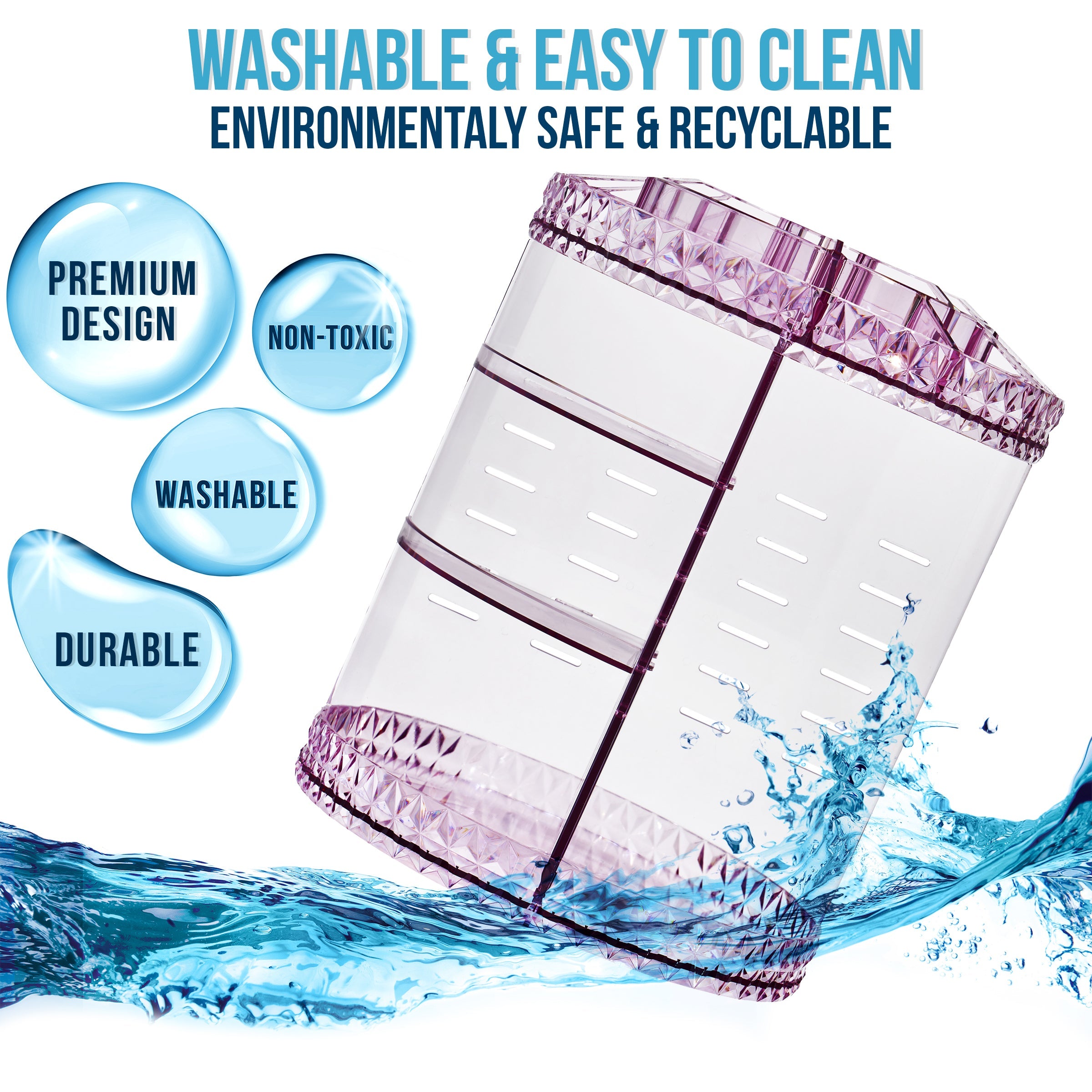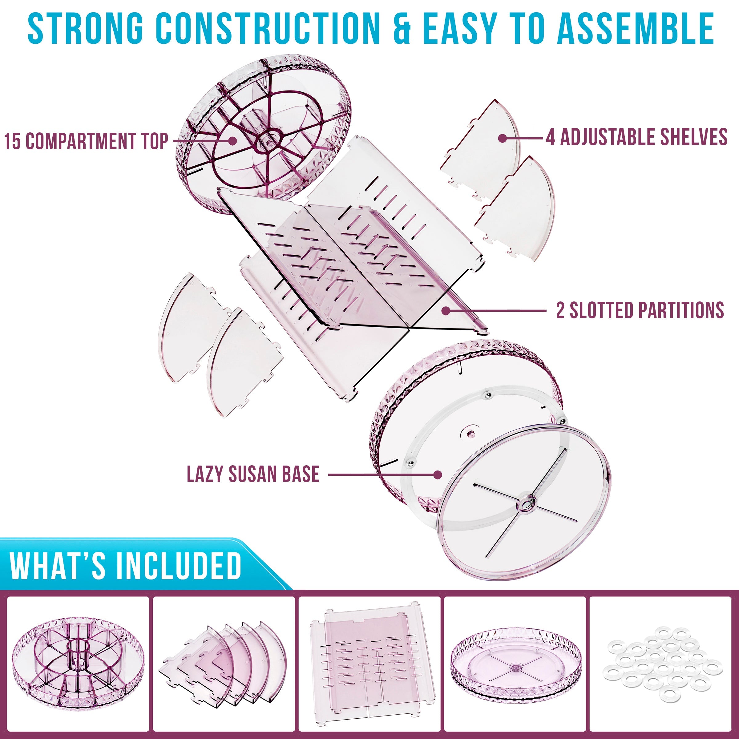 - Carousel style organizer with 360° rotation