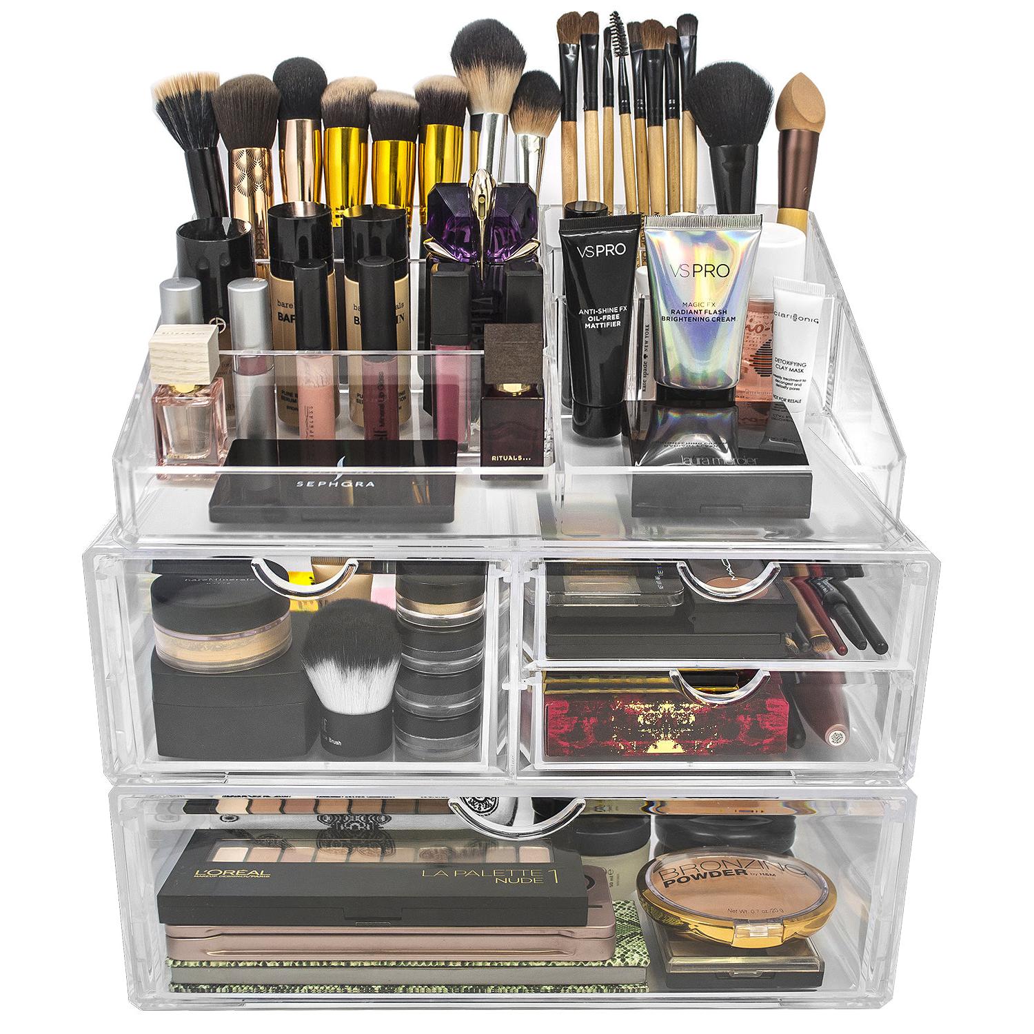 Turn your loose makeup into your very own beauty counter! This organizer case features one extra-large scoop drawer with clear construction to store your favorite cosmetic products. With an interchangeable design, it stacks and/or coordinates with other Sorbus organizers as your collection grows. Don't limit your imagination to beauty needs! Crafts, grooming tools, jewelry, and other personal items can be beautifully organized within this drawer. For convenience, you'll always see your products right when you need them most while adding a chic display to your countertop. (Makeup NOT INCLUDED).
