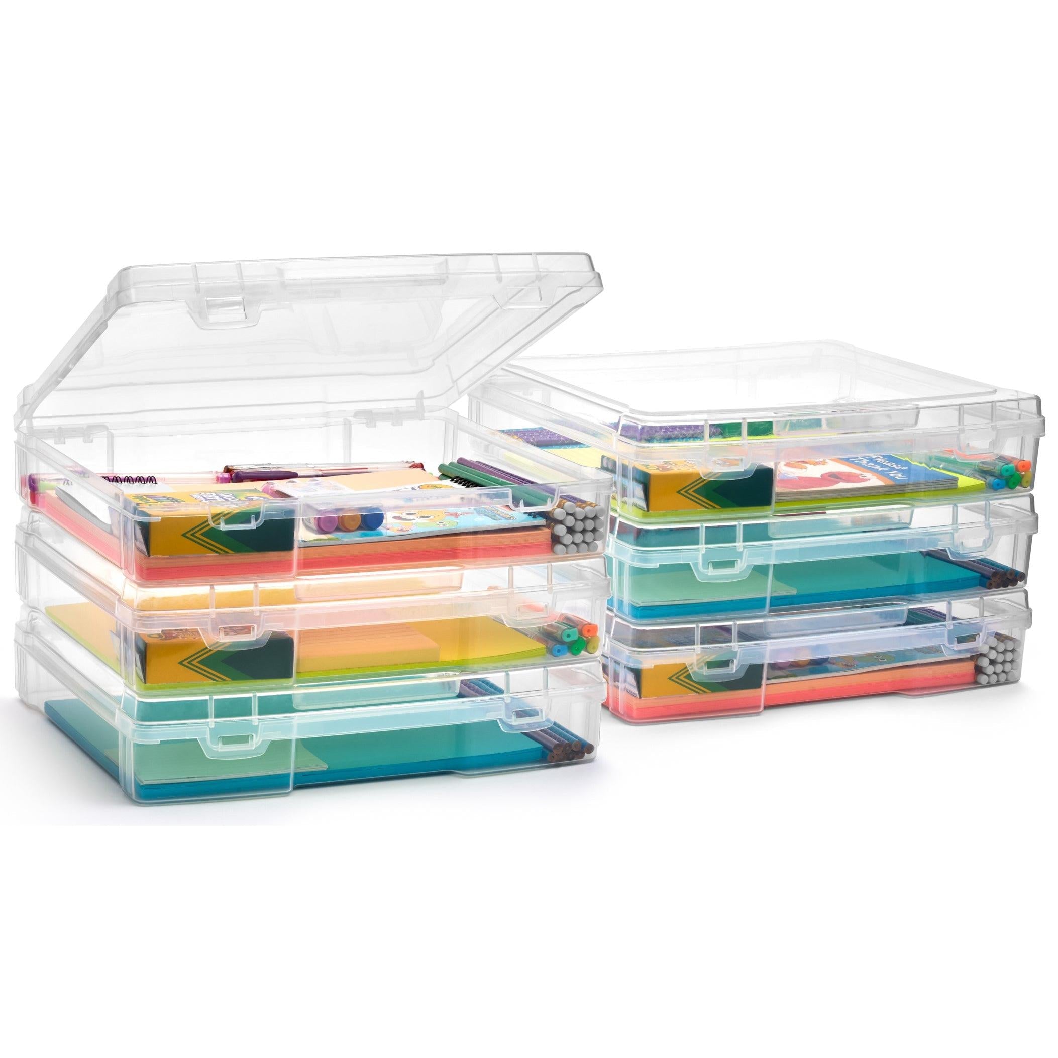 This clear, portable case keeps your craft supplies, games & essentials visible & secure. Find what you need fast! Secure latch, handle for easy carrying, stackable for space-saving. Label for personalization. BPA-free plastic. Declutter, organize, take creativity on the go!