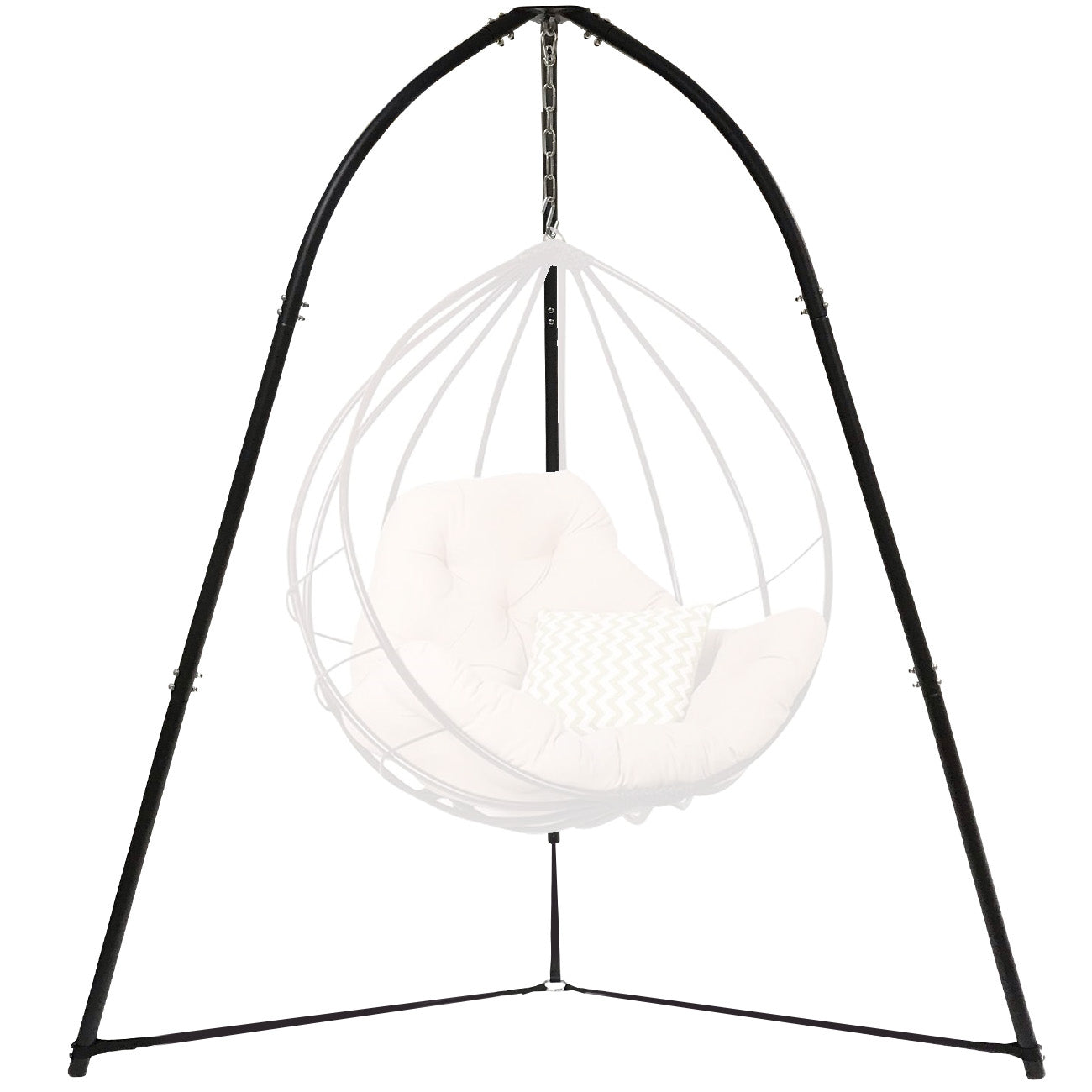 No more drilling hooks into the ceiling or searching for the perfect tree to hang your swing. This freestanding frame makes the perfect centerpiece to your indoor/outdoor space. Simply pair with any hanging saucer bed, cocoon chair, or swing to spend the day swiveling under the sunset, relaxing by the pool, or lounging near the garden. If you prefer switching out chairs depending on the season or style, this is the perfect alternative!