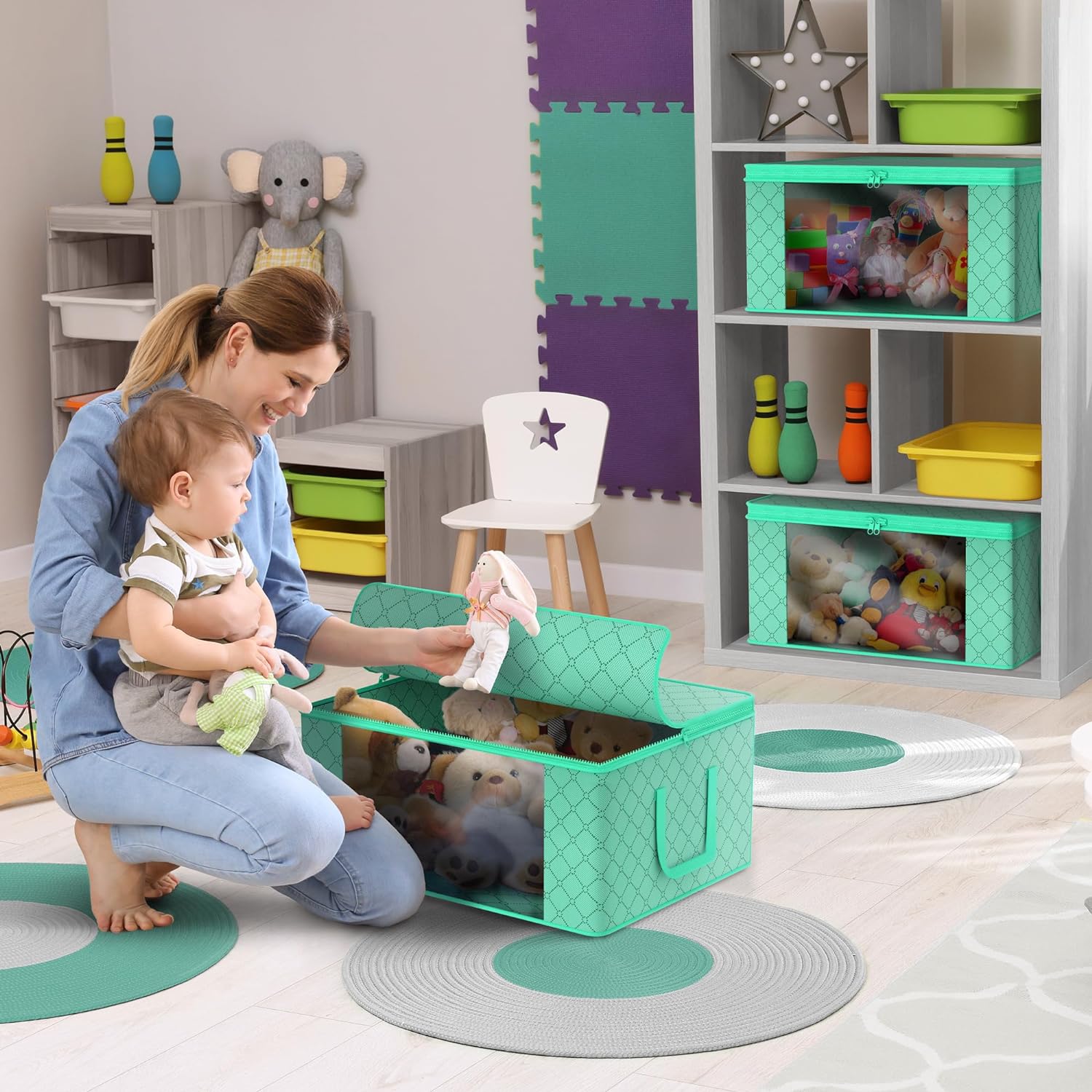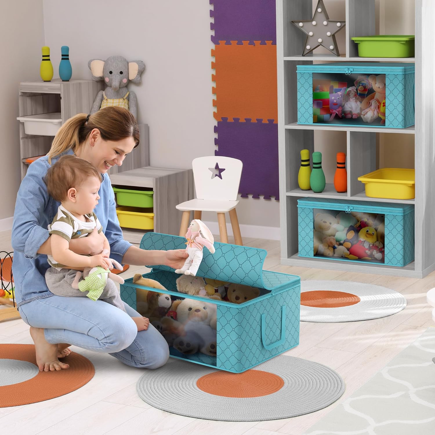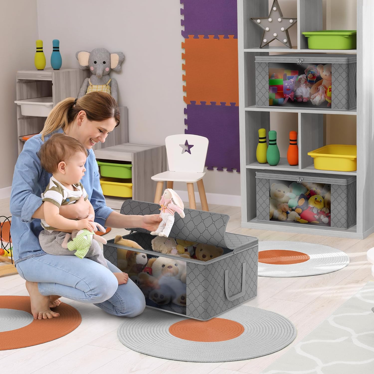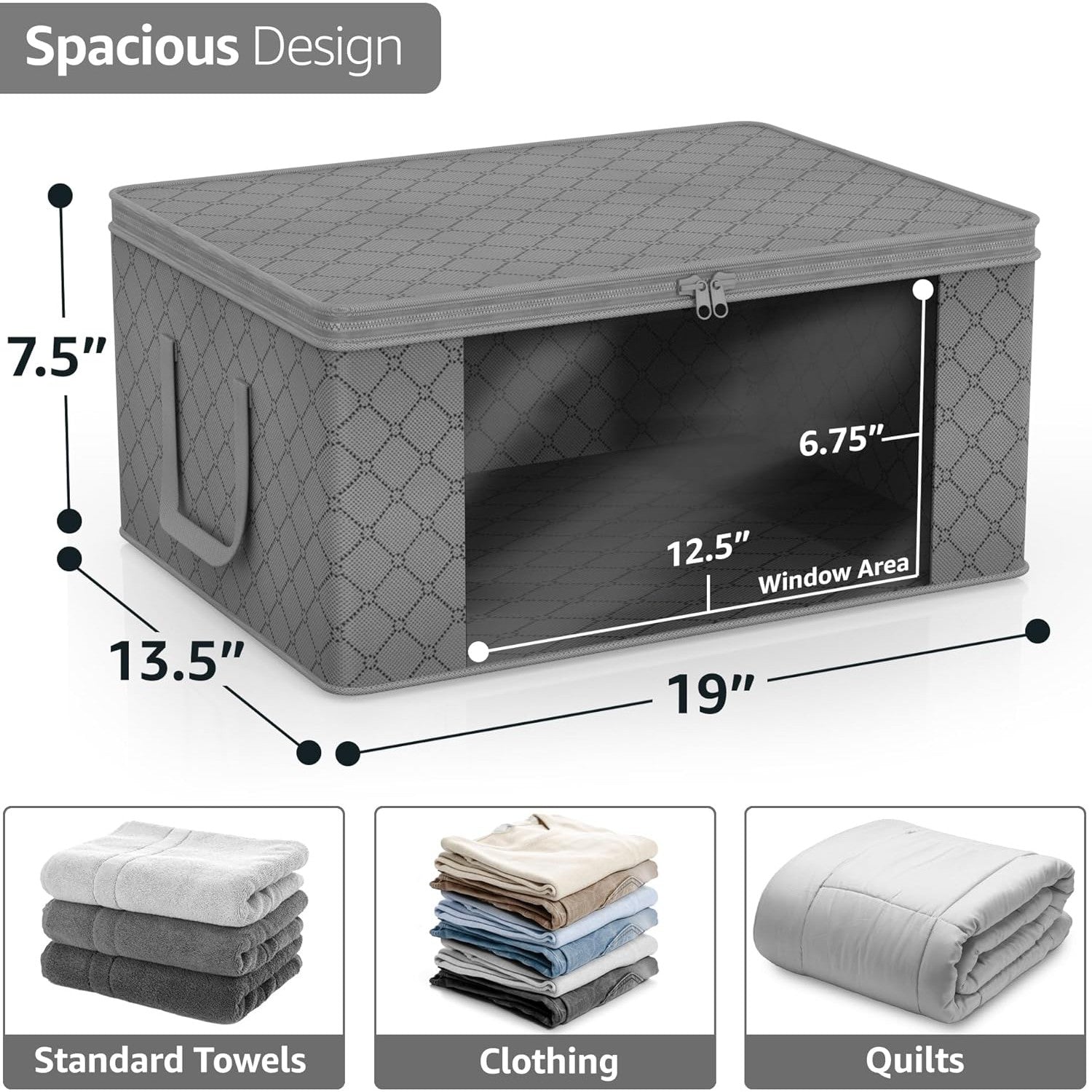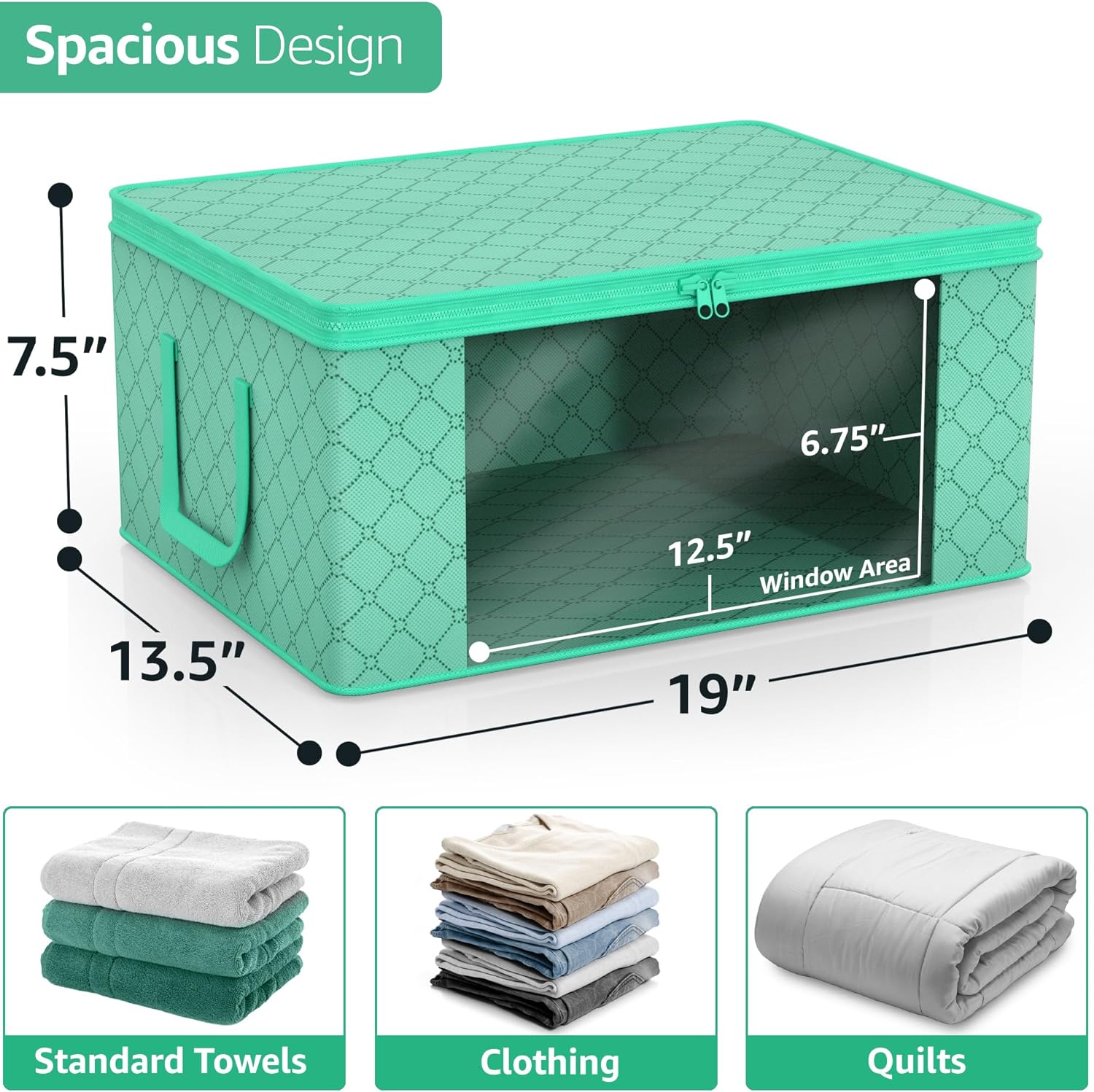 - Stores seasonal clothes, quilts, blankets, linens, pillows, comforters, and more.